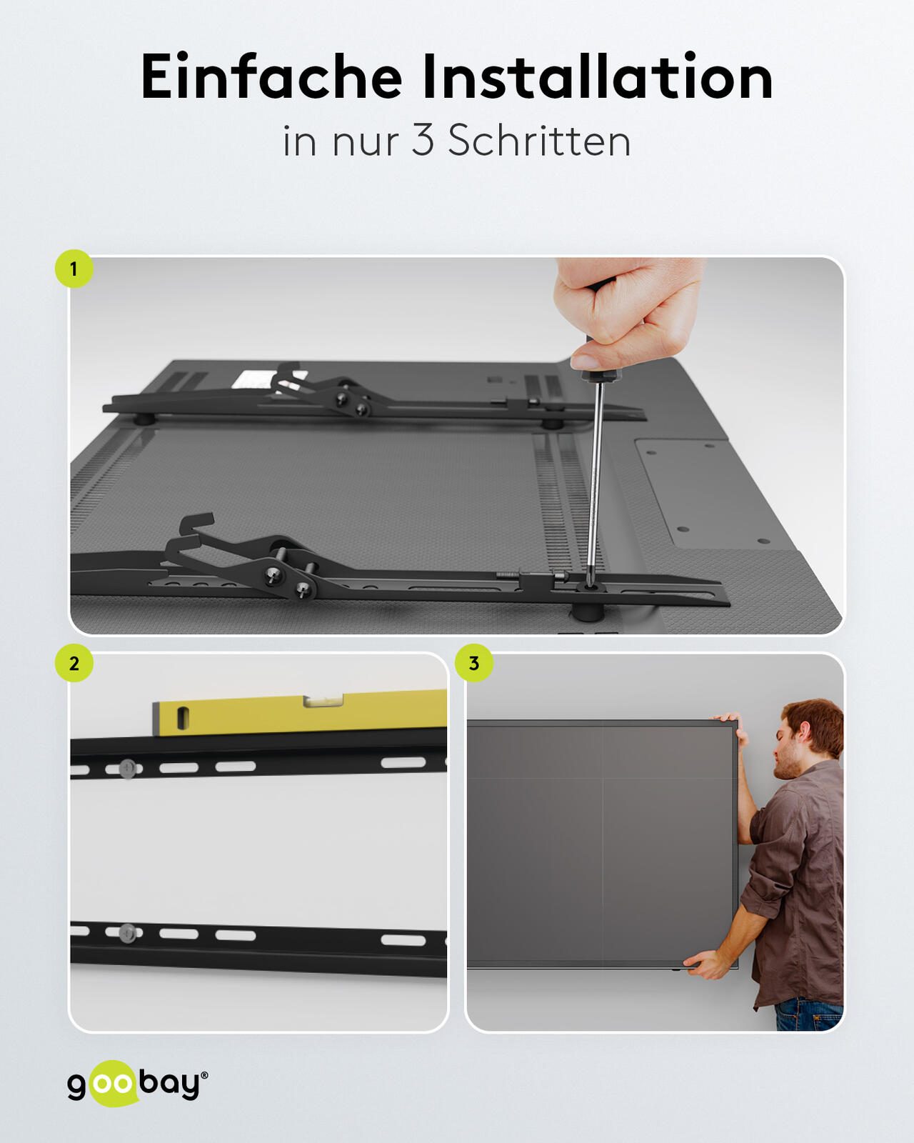 Das schlichte und zugleich funktionale Design der Basic TILT (L) Serie von goobay fügt sich dezent in jede Wohnraumgestaltung ein, während die hochwertige Verarbeitung aus Stahl für Langlebigkeit und Sicherheit sorgt. Diese TV-Halterung verbindet praktische Eigenschaften mit einer ansprechenden Optik und ist somit eine ausgezeichnete Wahl für alle, die Wert auf Qualität und Flexibilität legen.