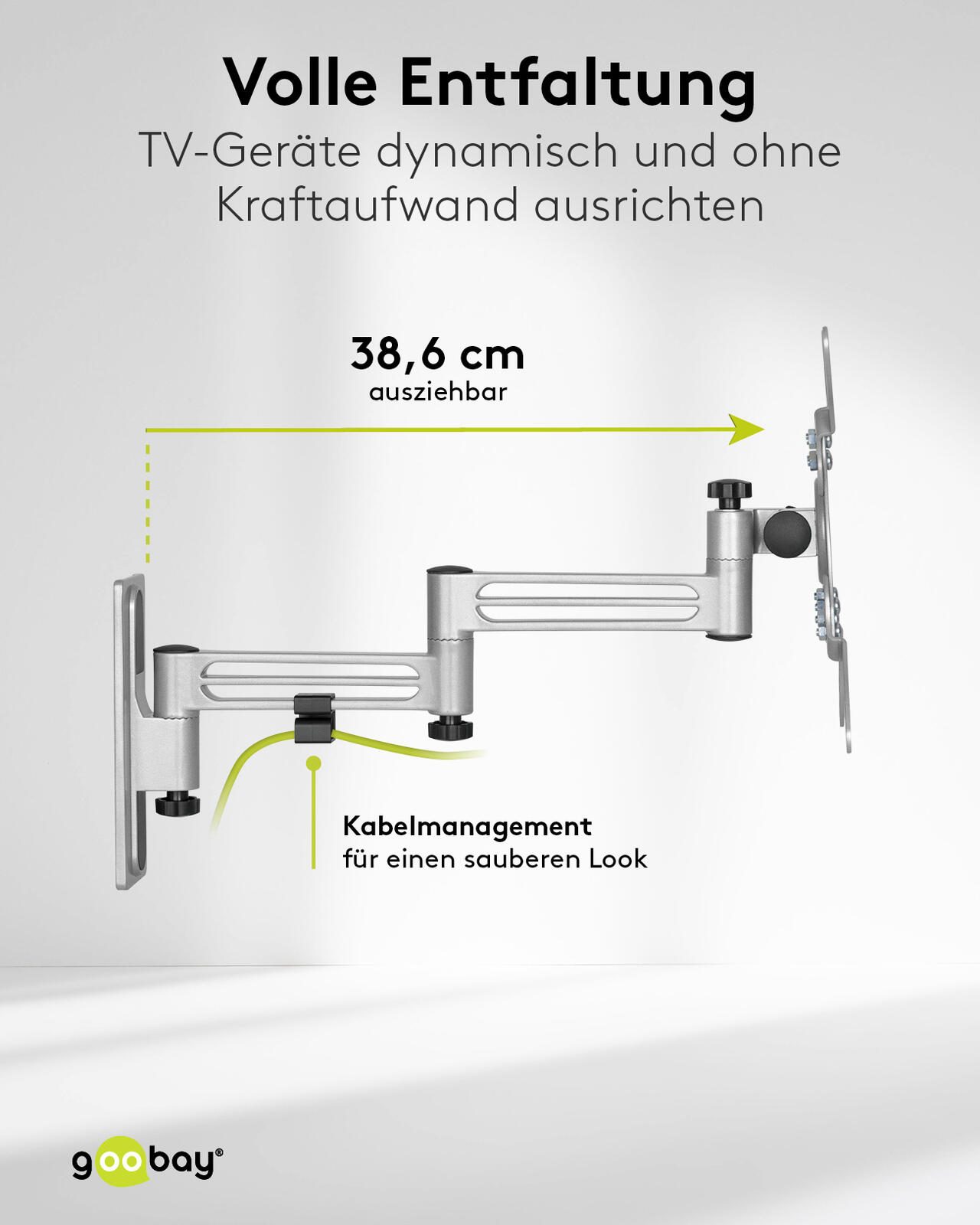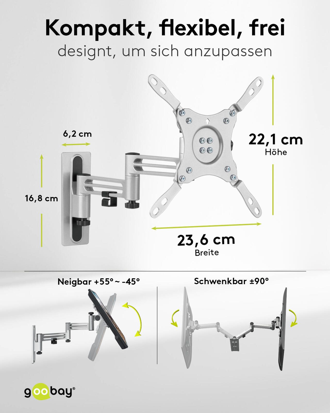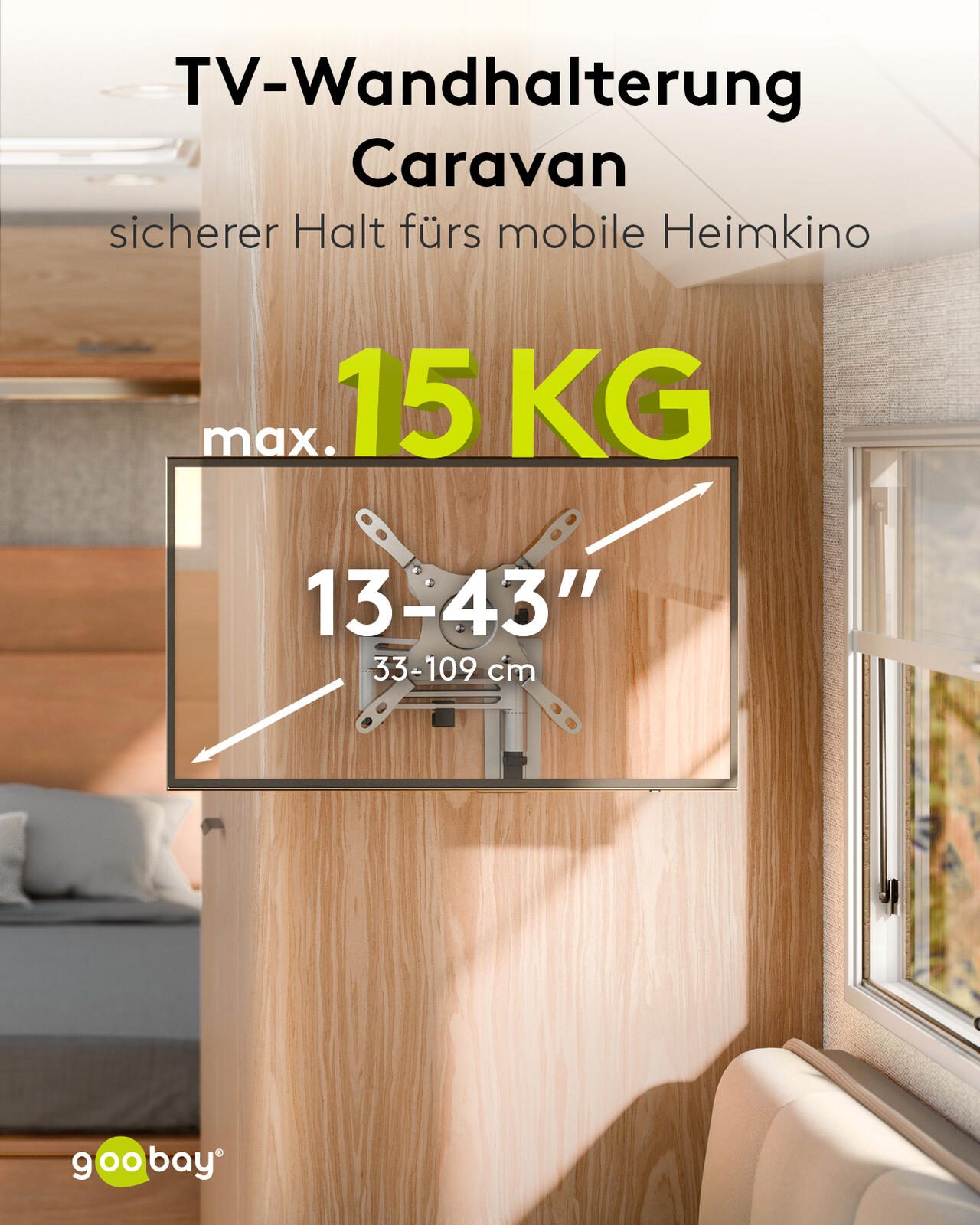 Die Montage an der Wand ist unkompliziert und platzsparend, wodurch sich die Halterung ideal für den Einsatz im Caravan, Wohnmobil oder auch in kleinen Wohnräumen eignet. Die Kombination aus Funktionalität, Stabilität und flexiblem Design macht die goobay TV-Halterung Caravan FULLMOTION (M) zu einer ausgezeichneten Wahl für alle, die Wert auf Qualität und Anpassungsfähigkeit legen.