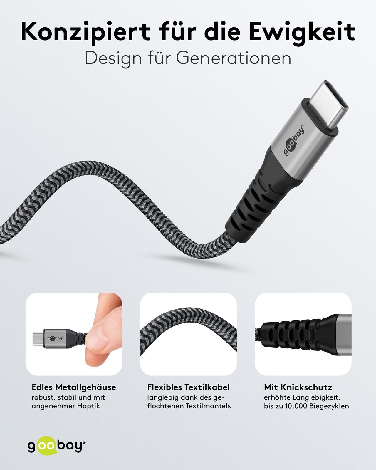 goobay USB 2.0 C/USB 2.0 C, 2.0 A USB-Kabel 1,0 m grau, schwarz, 1 St.