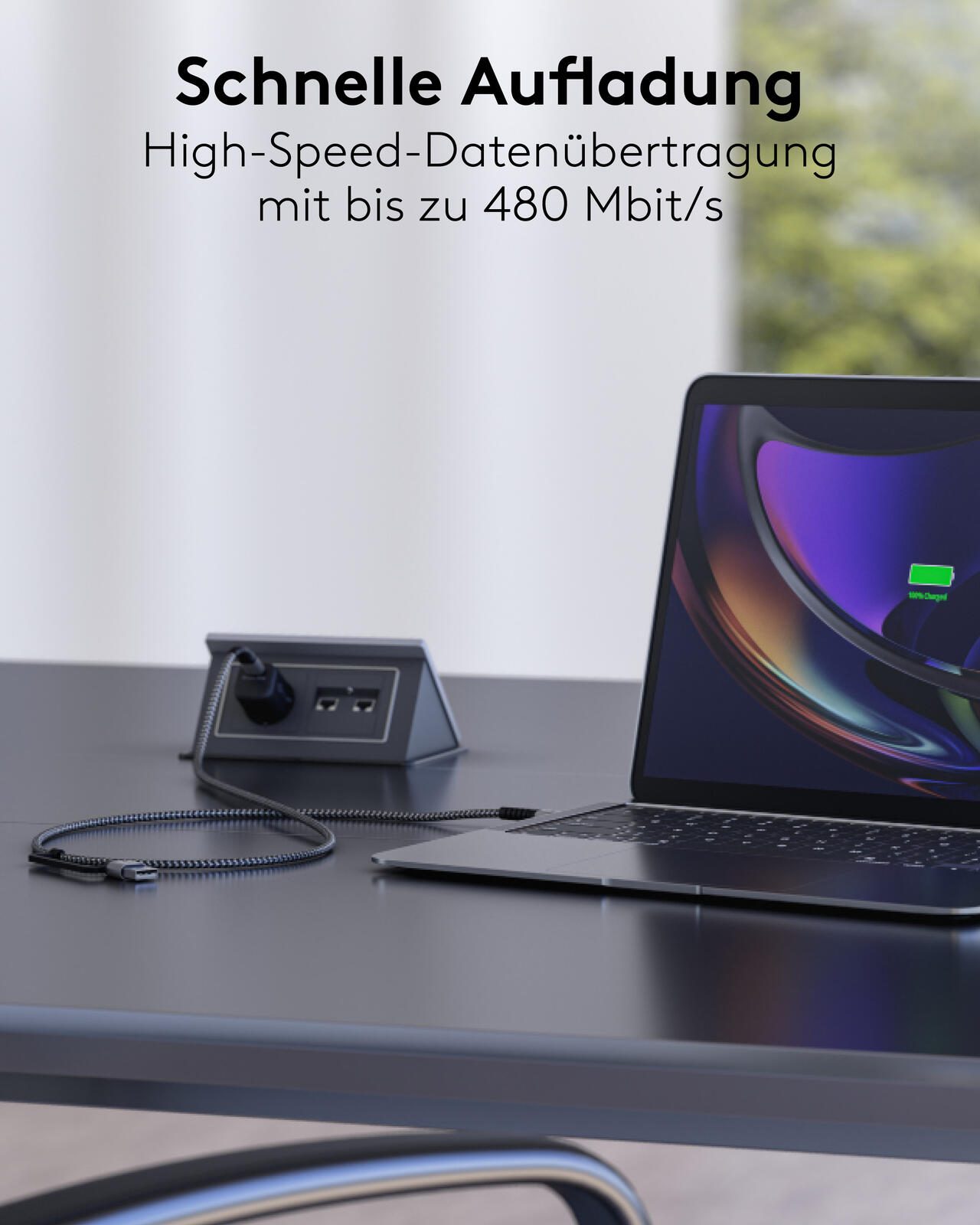 Die USB 2.0 Schnittstelle ermöglicht eine zuverlässige Datenübertragung und Stromversorgung mit einer Stromstärke von bis zu 2,0 Ampere. Dadurch ist das Kabel für den alltäglichen Gebrauch geeignet, etwa zum Laden von Smartphones, Tablets oder anderen kompatiblen Geräten sowie für den Datenaustausch zwischen Geräten.