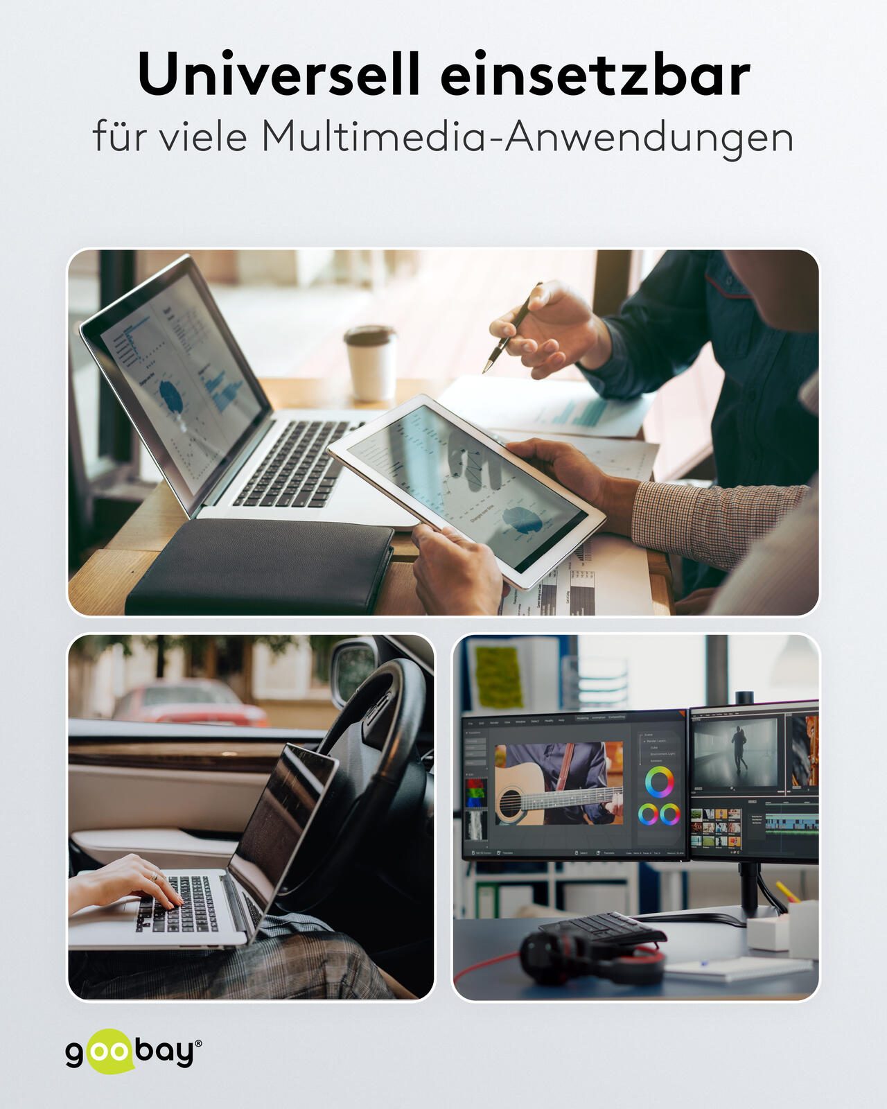 Das Kabel ist Teil der Produktfamilie „Kabel, extern (PC)“ und wird von der Marke goobay, einem Produkt der Wentronic GmbH aus Braunschweig, hergestellt. Es zeichnet sich durch eine praktische Länge sowie eine robuste Bauweise aus und ist für Nutzer konzipiert, die eine einfache und funktionale Verbindungslösung ohne komplizierte Technik benötigen.