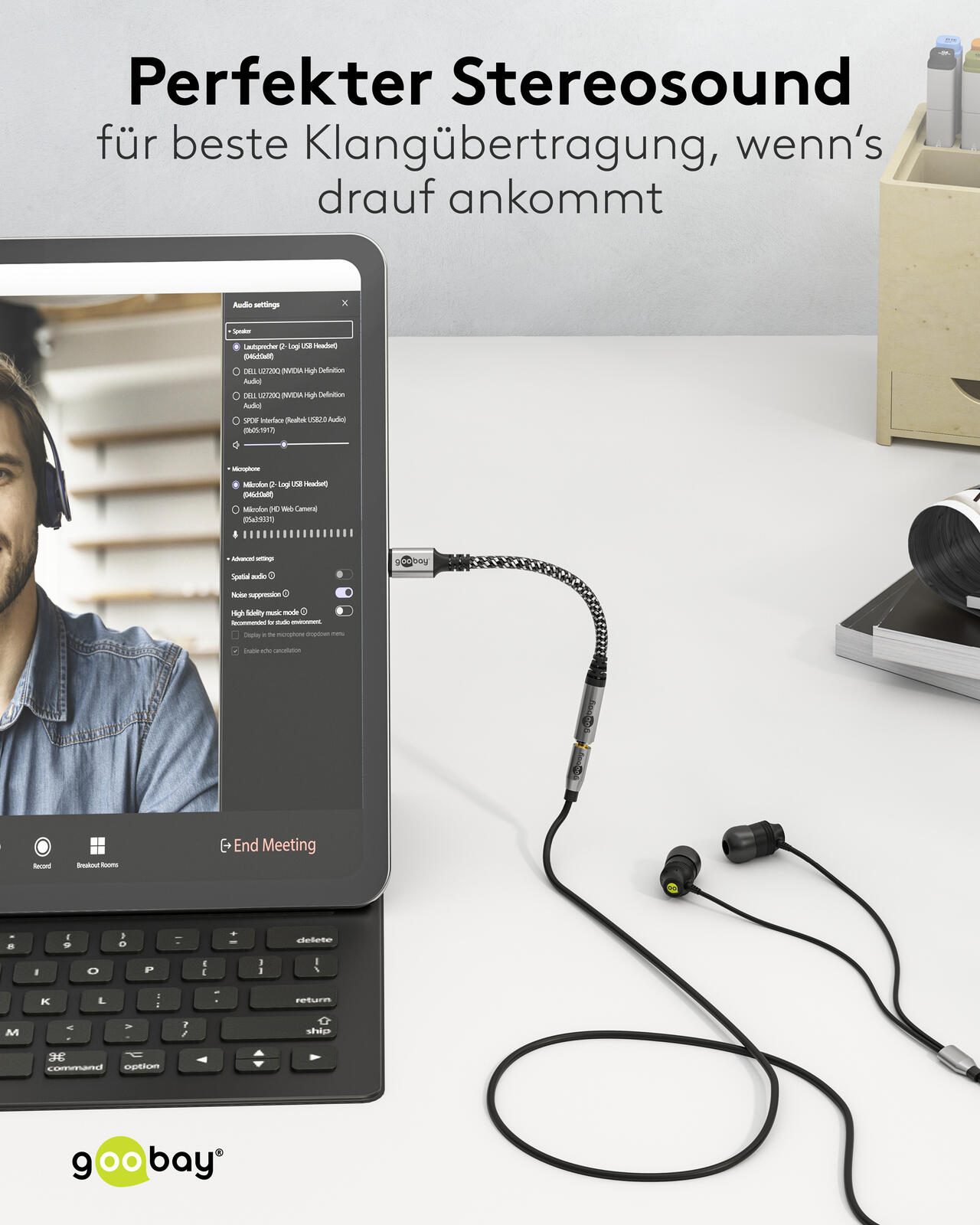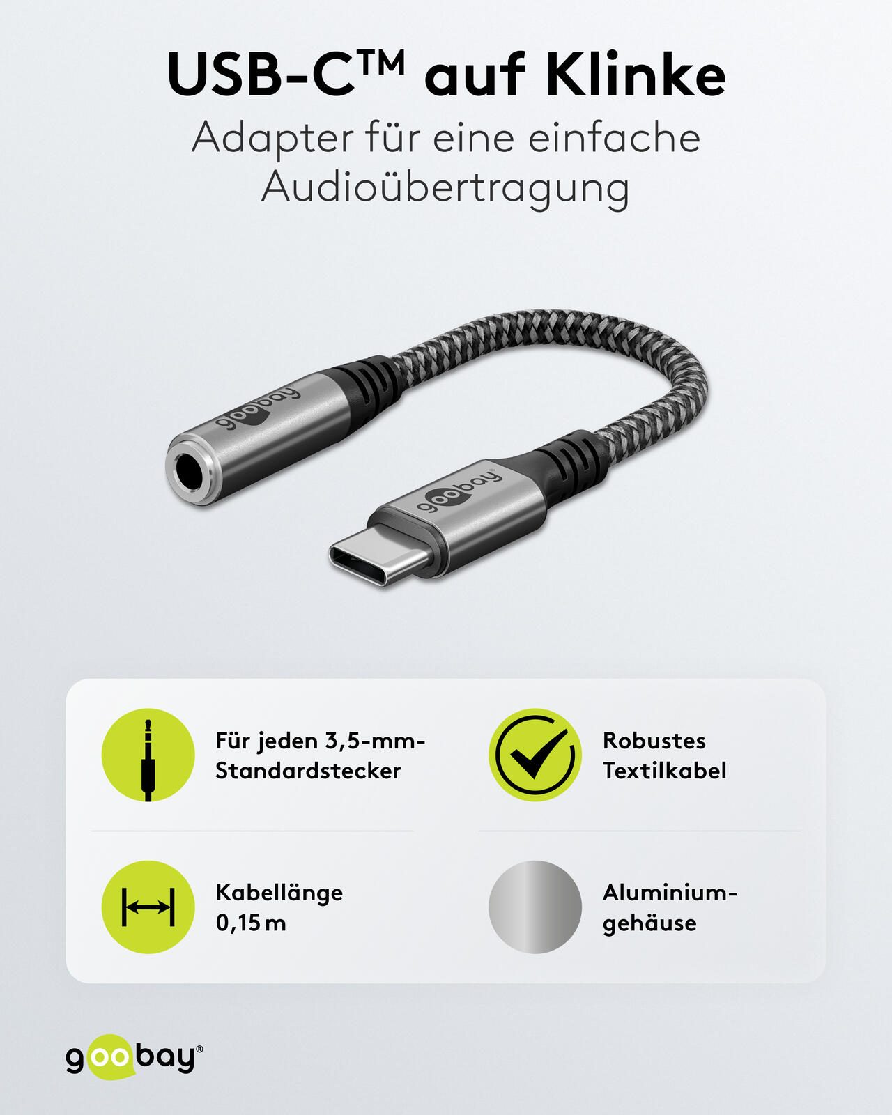 - Anschluss: USB C-Stecker / 3,5-mm-Klinkenstecker