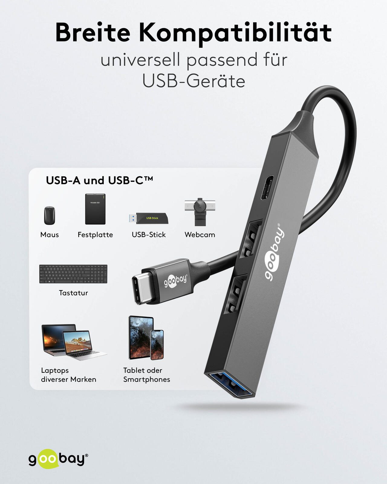 goobay USB-Hub (3.2 Typ C) Slim 4-fach grau