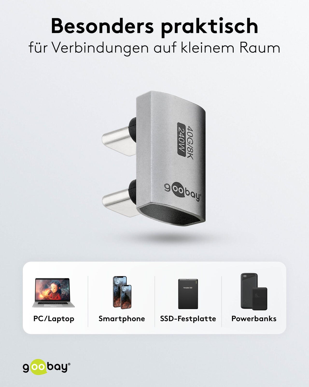 - Besonders praktisch für Verbindungen auf kleinem Raum, z. B. zum Anschluss von Powerbanks oder SSD-Festplatten an Smartphones