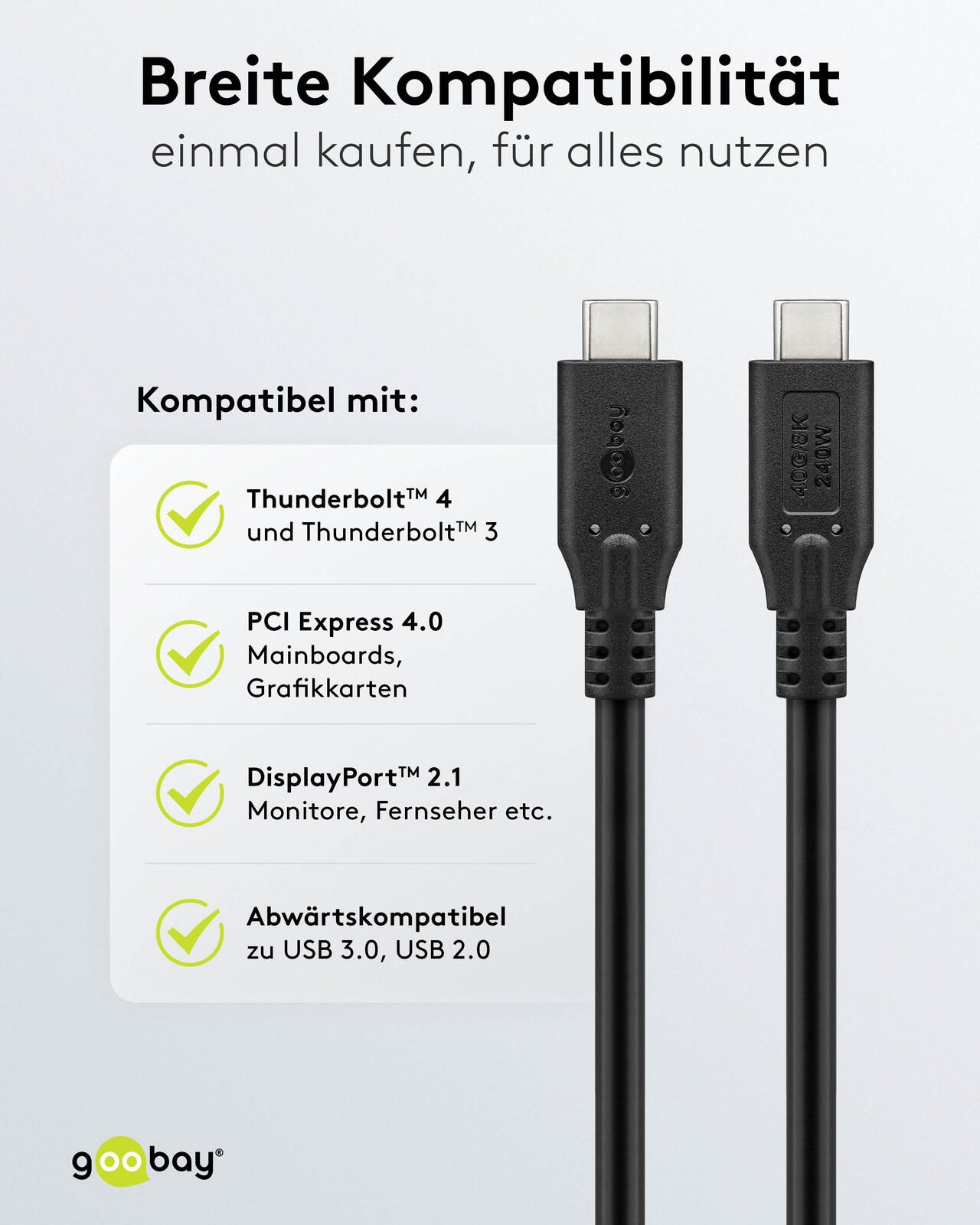 Darüber hinaus ermöglicht das Kabel eine Power Delivery von bis zu 240 Watt, was eine schnelle und effiziente Stromversorgung kompatibler Geräte gewährleistet. Dies macht es besonders geeignet für den Einsatz mit leistungsstarken Laptops, Monitoren oder anderen USB4-fähigen Geräten, die eine hohe Energiezufuhr benötigen.