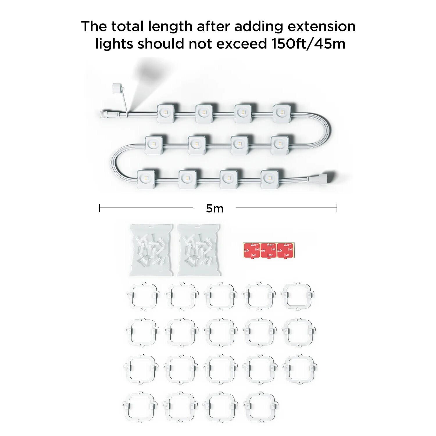 Einfache Installation: Verwenden Sie einfach den mitgelieferten VHB-Kleber und die Clips für eine unkomplizierte Montage. Hinweis: Produkt nicht zuschneidbar. Unterstützt maximal 9 Lichtabschnitte und 4 Verlängerungskabel.