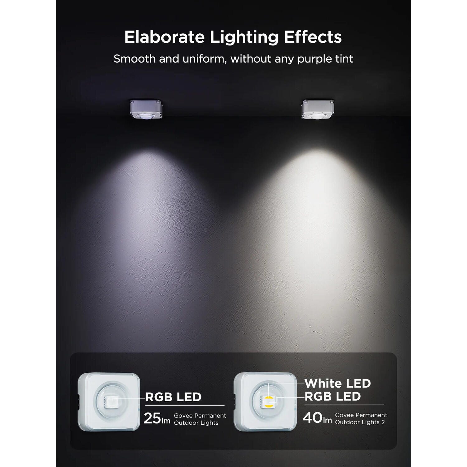 Ausgefeilte RGBICW-Beleuchtung: Govee Dauerhafte Outdoor-Leuchten 2 haben ein verbessertes Design und bieten einen sanften Lichteffekt mit 16 Millionen präzisen Farben. Darüber hinaus erhöhen sie auch die Sicherheit mit ihrem weißen Licht von 40 lm.