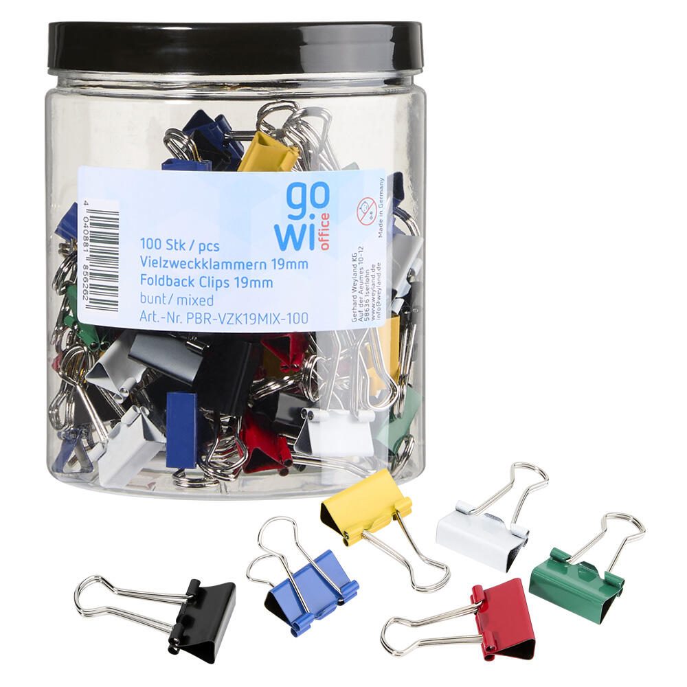 Gowi Foldbackklammern farbsortiert 1,9 cm, 100 St.