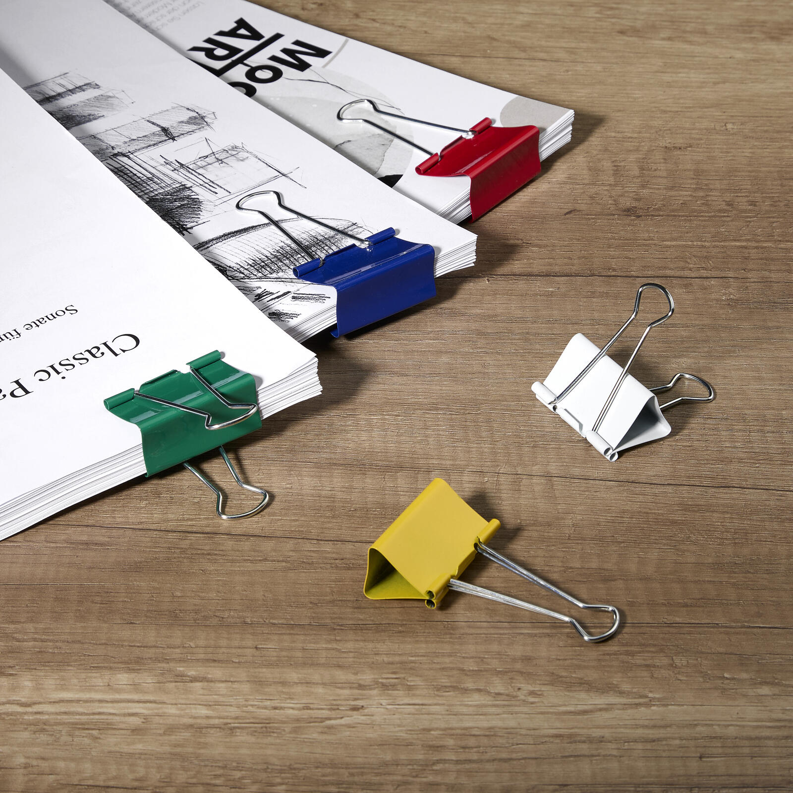 Gefertigt aus robustem Federstahl, zeichnen sich die Foldbackklammern durch ihre Langlebigkeit und Stabilität aus. Ein besonderer Rostschutz sorgt dafür, dass die Klammern auch bei längerem Gebrauch ihre Funktionalität behalten und nicht korrodieren. Die farbsortierte Auswahl verleiht Ihrem Schreibtisch zudem einen lebendigen Akzent und unterstützt die visuelle Differenzierung von Dokumenten.