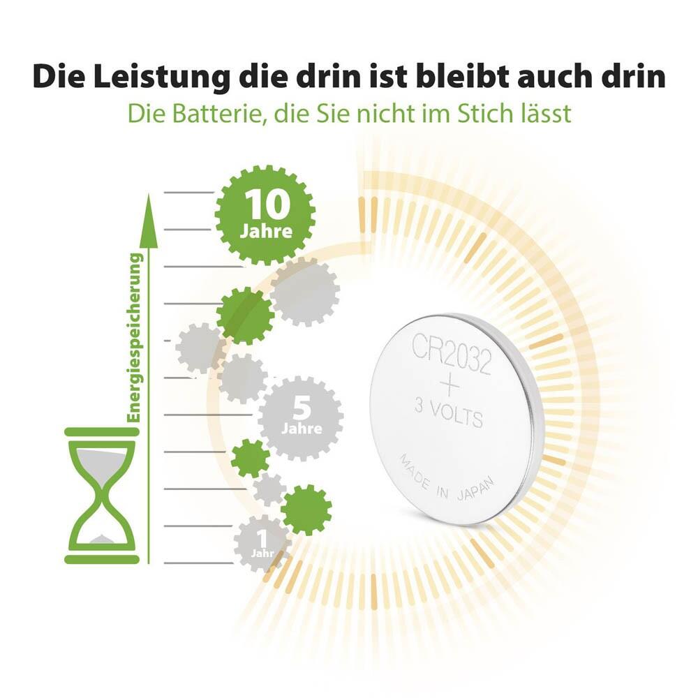 Die GP Knopfzellen CR2032 mit einer Spannung von 3,0 V sind die ideale Energielösung für deine kleinen Geräte. Mit einer Kapazität von 220 mAh bieten diese Lithium-Batterien eine zuverlässige und langanhaltende Energiequelle. Ob für Organizer, Taschenrechner, Uhren oder andere elektronische Geräte, diese Knopfzellen sind vielseitig einsetzbar und garantieren eine optimale Leistung. Dank ihrer kompakten Bauweise passen die GP Knopfzellen CR2032 problemlos in eine Vielzahl von Geräten und sorgen dafür, dass du immer die benötigte Energie zur Hand hast. Die Verwendung von Lithium-Technologie gewährleistet nicht nur eine hohe Energiedichte, sondern auch eine lange Lagerfähigkeit, sodass du die Batterien immer dann nutzen kannst, wenn du sie benötigst. Mit der Bezeichnung GP Knopfzellen CR2032 3,0 V - 0602032C5 erhältst du ein Produkt von GP, einem renommierten Hersteller, der für Qualität und Zuverlässigkeit steht. Diese Knopfzellen sind nicht nur praktisch, sondern auch umweltfreundlich, da sie eine langlebige Energiequelle bieten und somit den häufigen Batteriewechsel reduzieren. Die GP Knopfzellen CR2032 sind die perfekte Wahl für alle, die Wert auf Leistung und Langlebigkeit legen. Egal, ob du sie für den täglichen Gebrauch oder als Ersatzbatterien aufbewahrst, diese 5er-Packung stellt sicher, dass du immer gut gerüstet bist. Vertraue auf die Qualität von GP und genieße die Vorteile dieser leistungsstarken Knopfzellen.Technische Daten