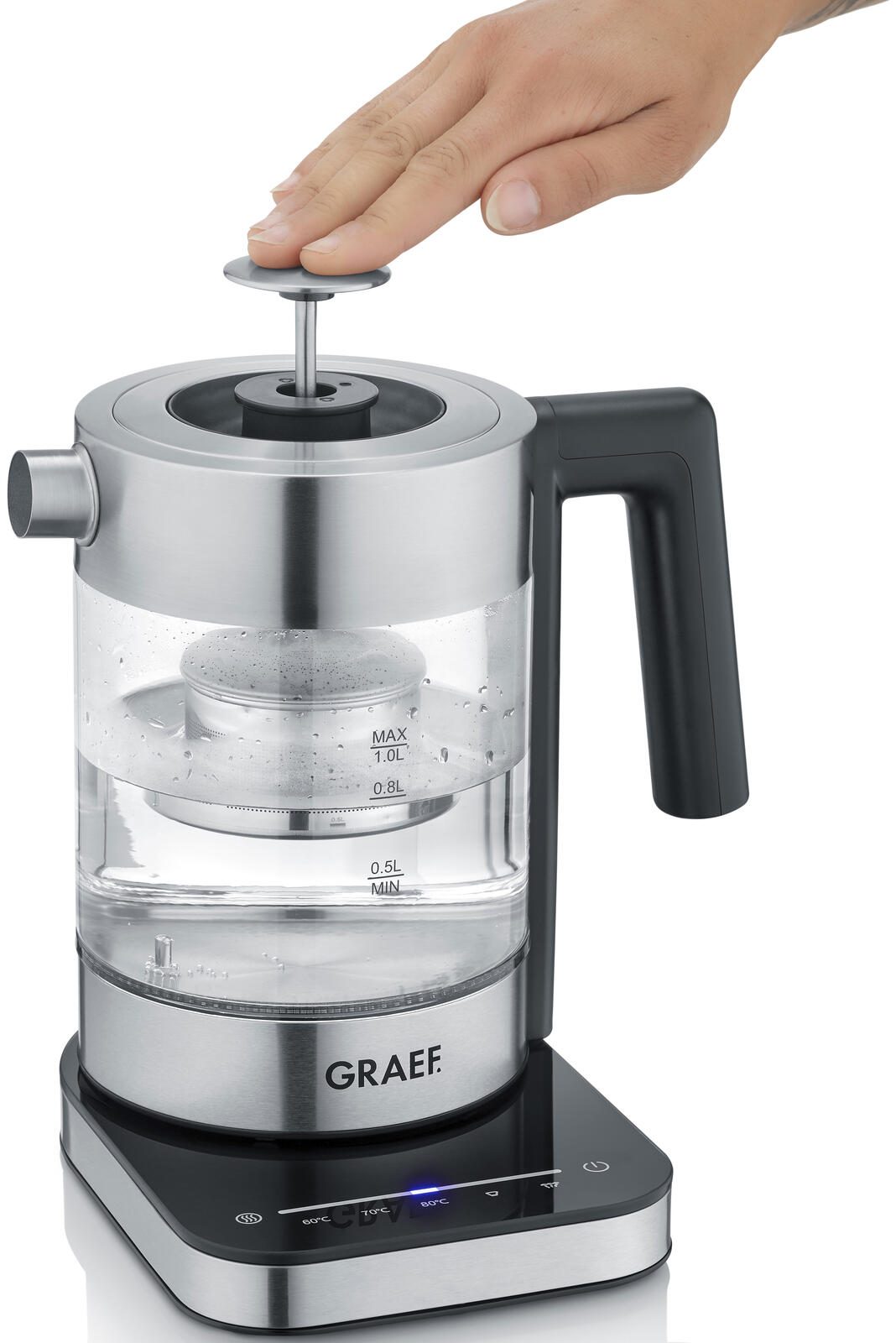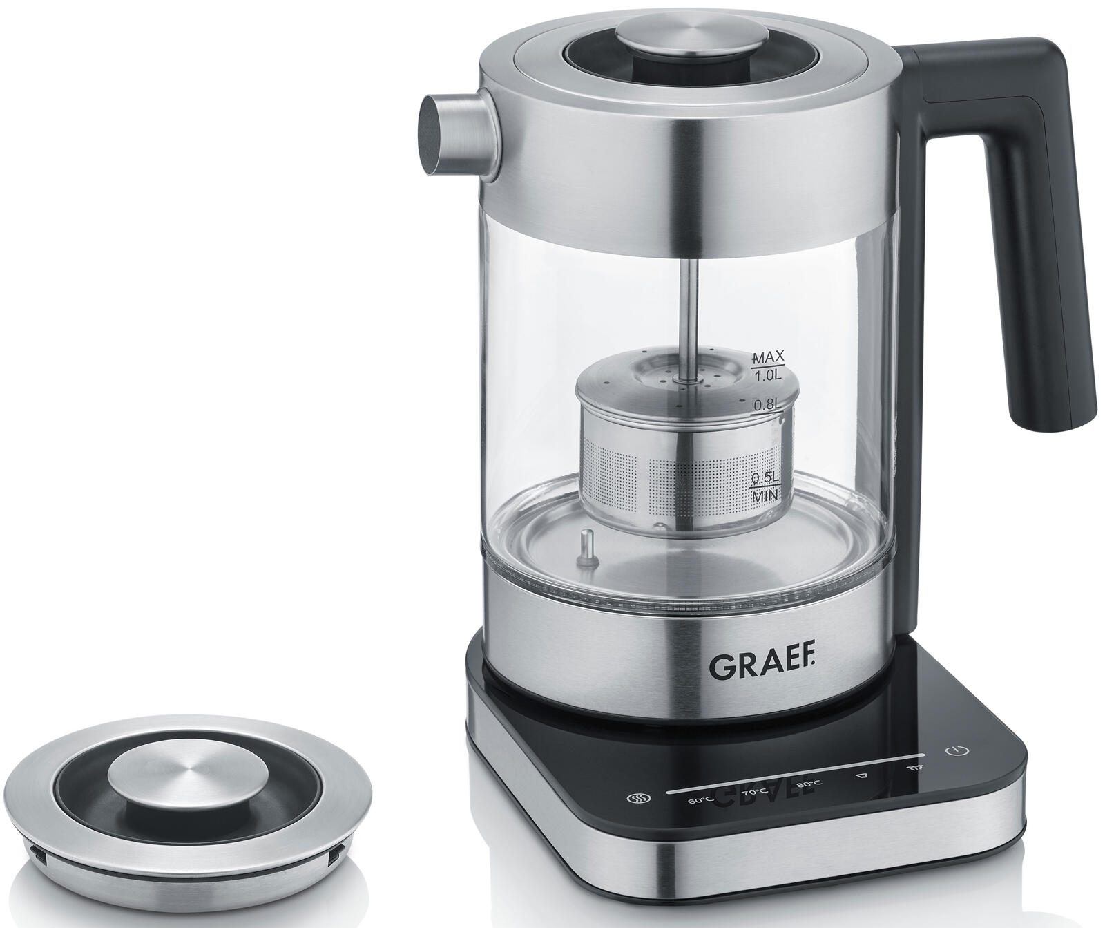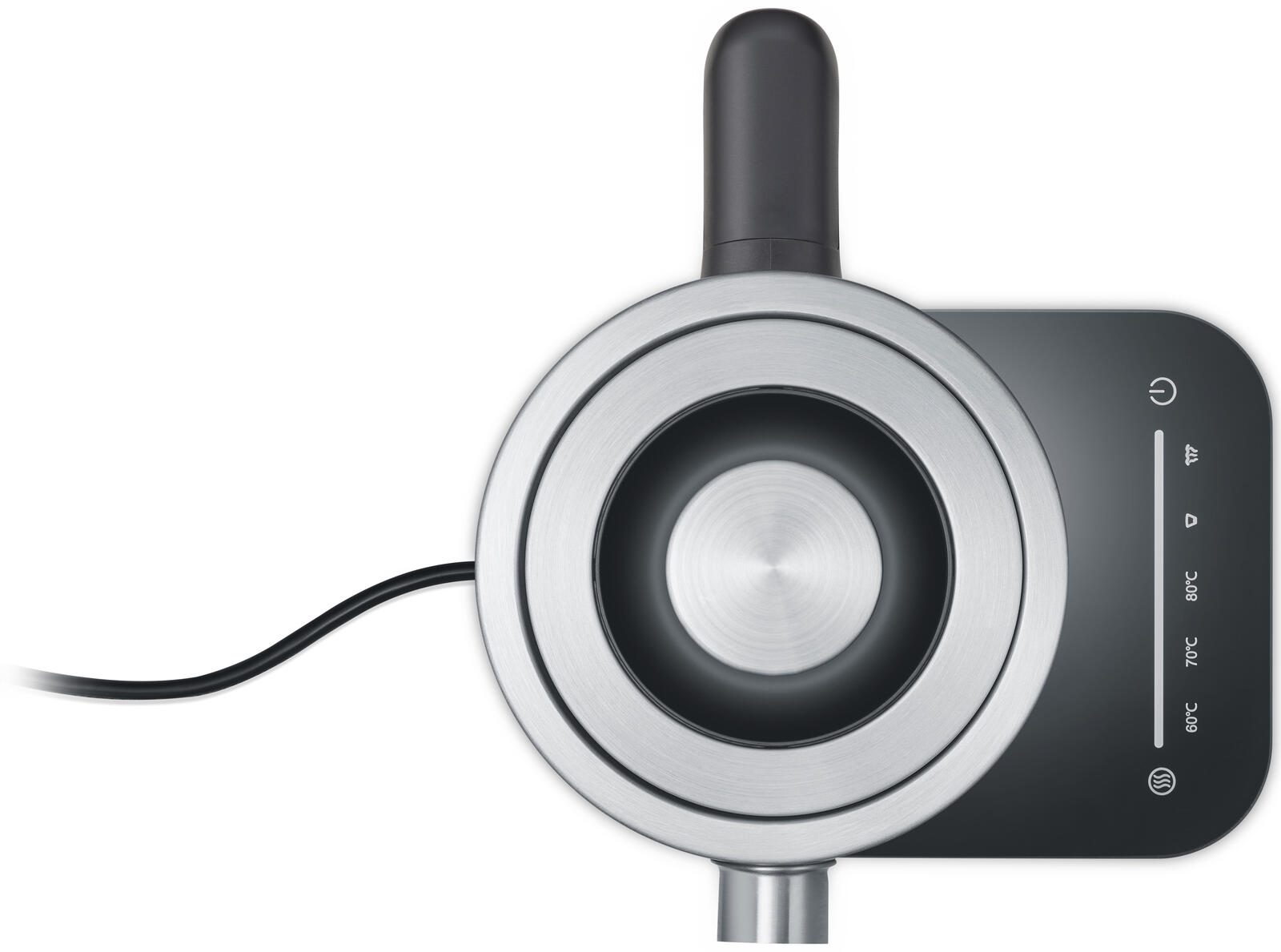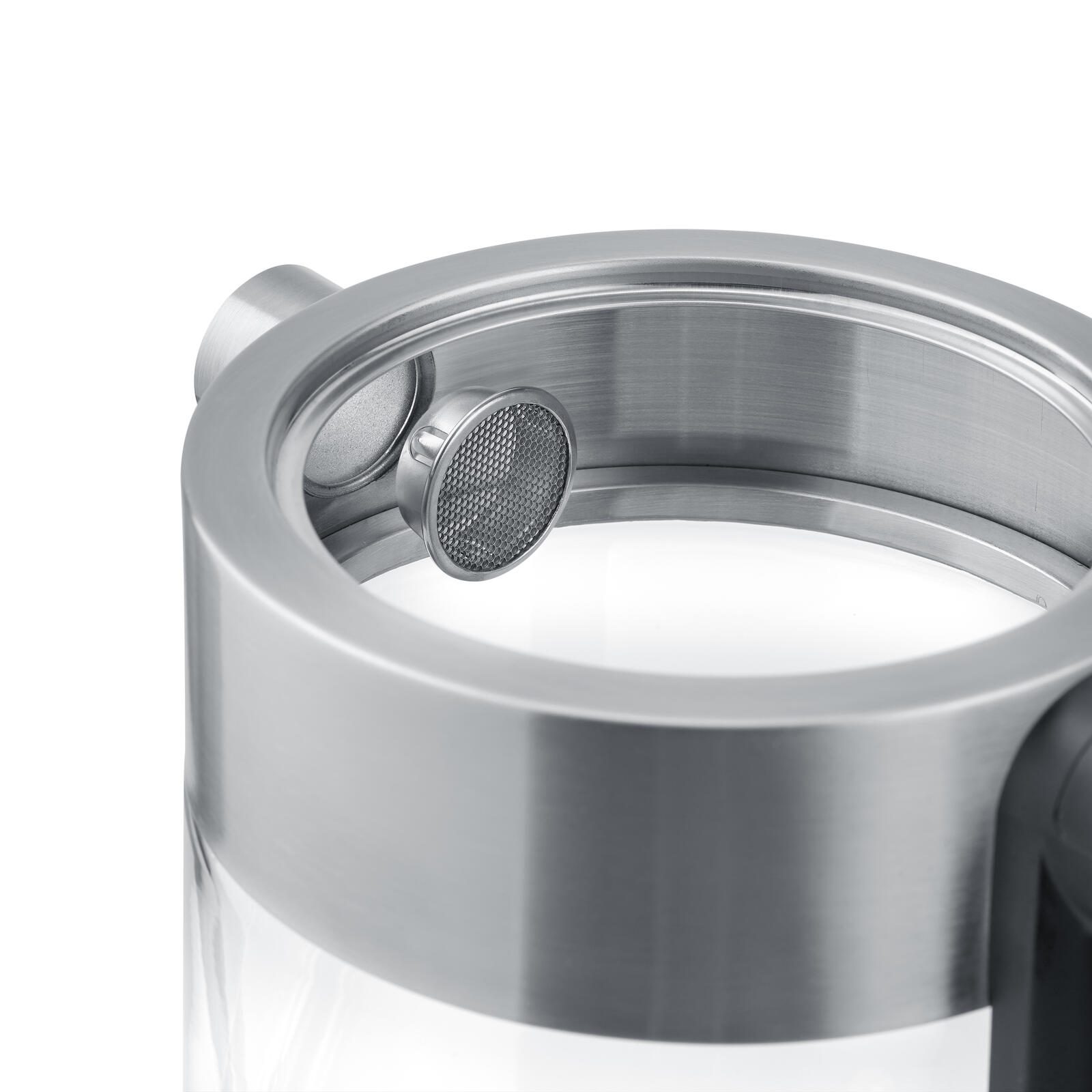 - Abschaltautomatik, drehbar, Kabelaufwicklung, Kontrollleuchte, Trockengehschutz, Überhitzungsschutz, verdecktes Heizelement, Wasserstandsanzeige