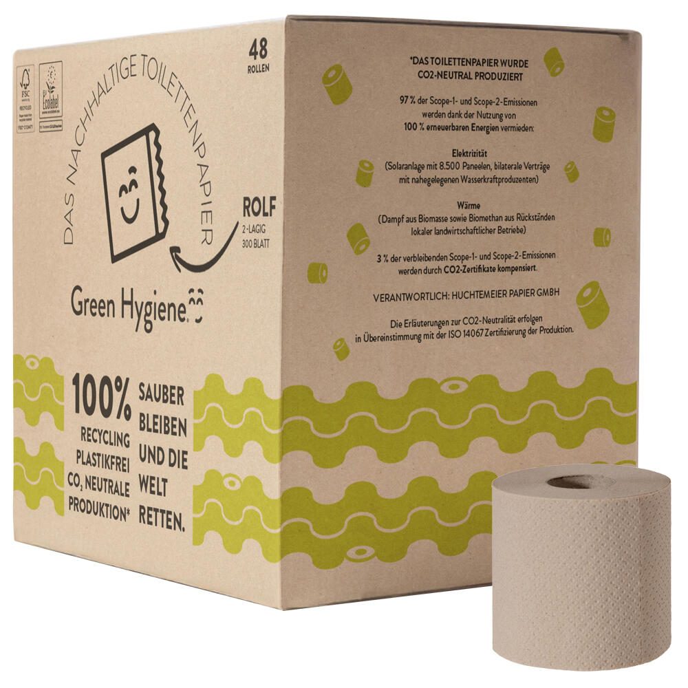 Green Hygiene® Toilettenpapier ROLF 2-lagig Recyclingpapier, 48 Rollen