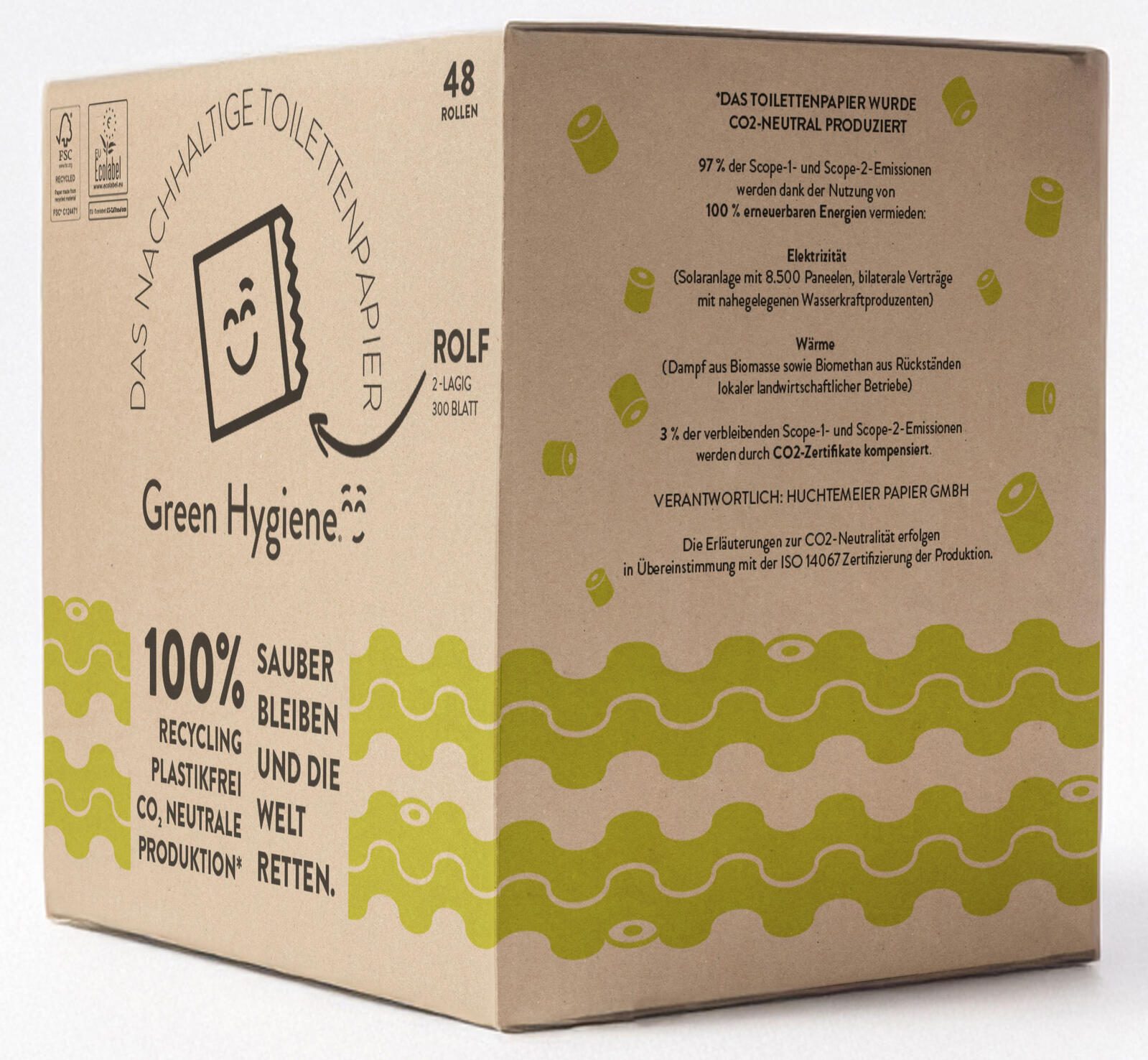 Hersteller dieses Produkts ist die Huchtemeier Papier GmbH aus Dortmund, die unter der Marke Green Hygiene® hochwertige Hygieneartikel anbietet. Das Produkt ist Teil der ROLF-Serie und verbindet Funktionalität mit nachhaltiger Produktion. Durch die Kombination von Qualität und Umweltfreundlichkeit stellt dieses Toilettenpapier eine praktische Lösung für den täglichen Bedarf dar.