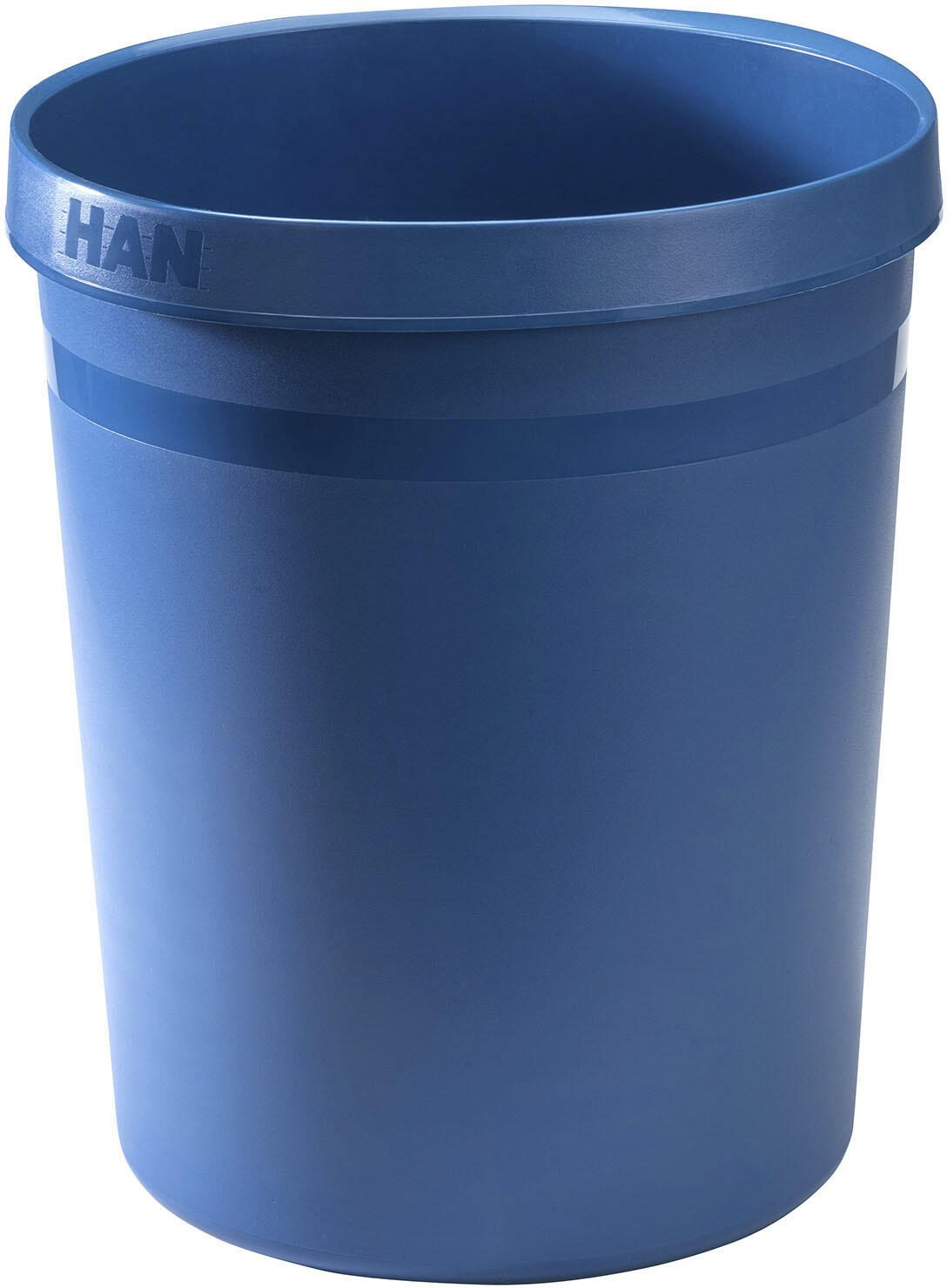 Der HAN Papierkorb 18,0 l in einem ansprechenden Blau ist die perfekte Lösung für dein Zuhause oder dein Büro. Mit einem großzügigen Fassungsvermögen von 18,0 Litern bietet dieser Papierkorb ausreichend Platz für deine Abfälle und sorgt für eine ordentliche und aufgeräumte Umgebung. Der moderne Tretmechanismus ermöglicht eine hygienische und bequeme Nutzung, da du den Korb einfach mit dem Fuß öffnen kannst, ohne die Hände benutzen zu müssen. Dieser Papierkorb ist nicht nur funktional, sondern auch umweltfreundlich. Hergestellt aus 80-100% Recyclingmaterial, unterstützt er nachhaltige Praktiken und trägt dazu bei, die Umweltbelastung zu reduzieren. Die Ausführung ohne Deckel sorgt dafür, dass der Inhalt jederzeit sichtbar ist, was die Entsorgung von Papier und anderen Abfällen erleichtert. Der HAN Papierkorb ist speziell für den Innenbereich konzipiert und passt perfekt in verschiedene Räume, sei es im Büro, in der Küche oder im Wohnbereich. Der Inneneimer erleichtert das Entleeren und Reinigen, sodass du stets einen sauberen und frischen Eindruck hinterlässt. Mit seinem eleganten blauen Farbton fügt sich der Papierkorb harmonisch in jede Umgebung ein und setzt gleichzeitig einen modernen Akzent. Der HAN Papierkorb 18,0 l kombiniert Funktionalität mit einem ansprechenden Design und ist somit die ideale Wahl für alle, die Wert auf Ordnung und Nachhaltigkeit legen.Technische Daten