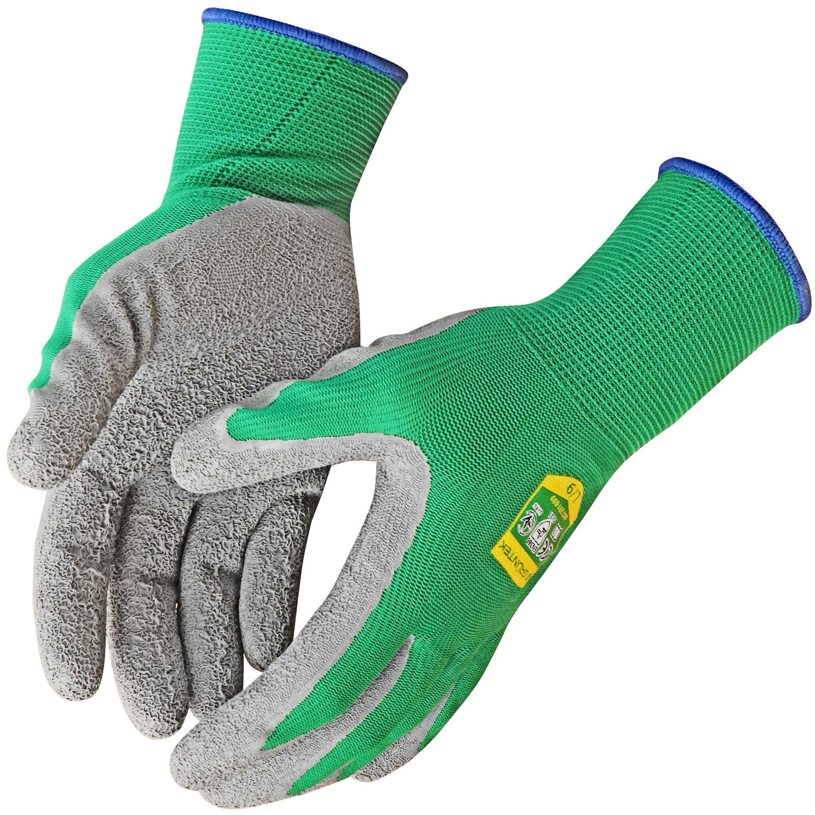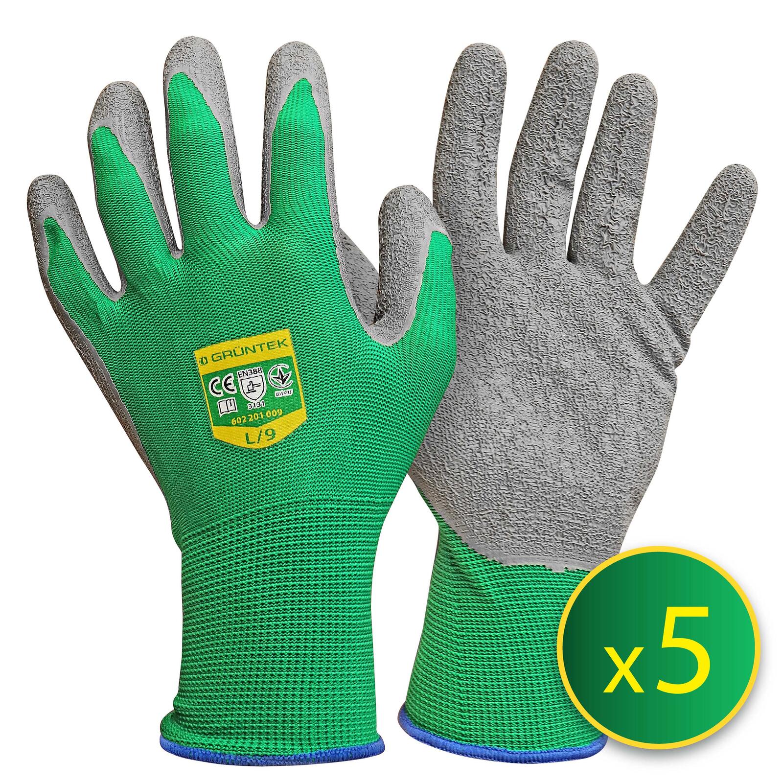 Die GRÜNTEK® unisex Gartenhandschuhe in Größe 9 sind vielseitige Arbeitshandschuhe, die sich ideal für den Einsatz auf Baustellen, im Garten, in der Freizeit, im Handwerk sowie in der Industrie eignen. Gefertigt aus atmungsaktiver Polyesterfaser mit einer robusten Latexbeschichtung bieten sie eine ausgezeichnete Kombination aus Flexibilität und Schutz.
