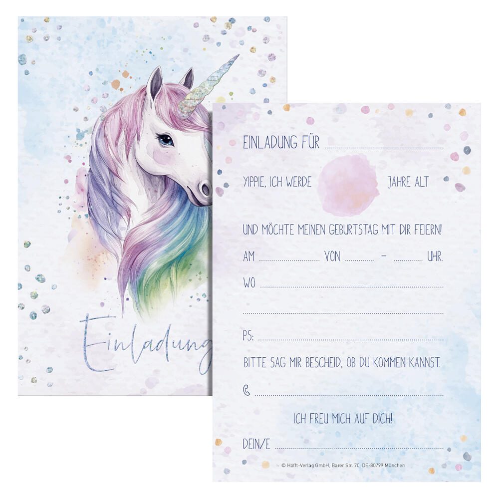 Häfft® Verlag Einladungskarte Einhorn DIN A6 1 Pack = 12 Pack