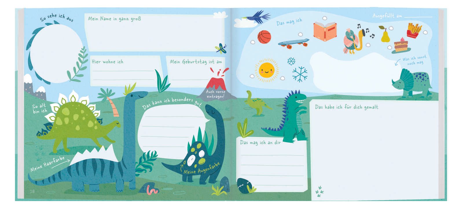Das Buch besticht durch sein farbenfrohes Dinomotiv, das Kinder begeistert und zum Mitmachen einlädt. Die weiße Papierfarbe sorgt für eine klare und gut lesbare Gestaltung, während das holzfreie Papier umweltbewusst hergestellt ist. Die Fadenheftung garantiert eine stabile Bindung und eine lange Haltbarkeit, sodass die Erinnerungen über die Kindergartenzeit hinaus bewahrt werden können.