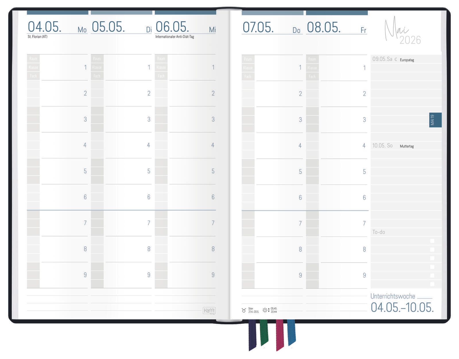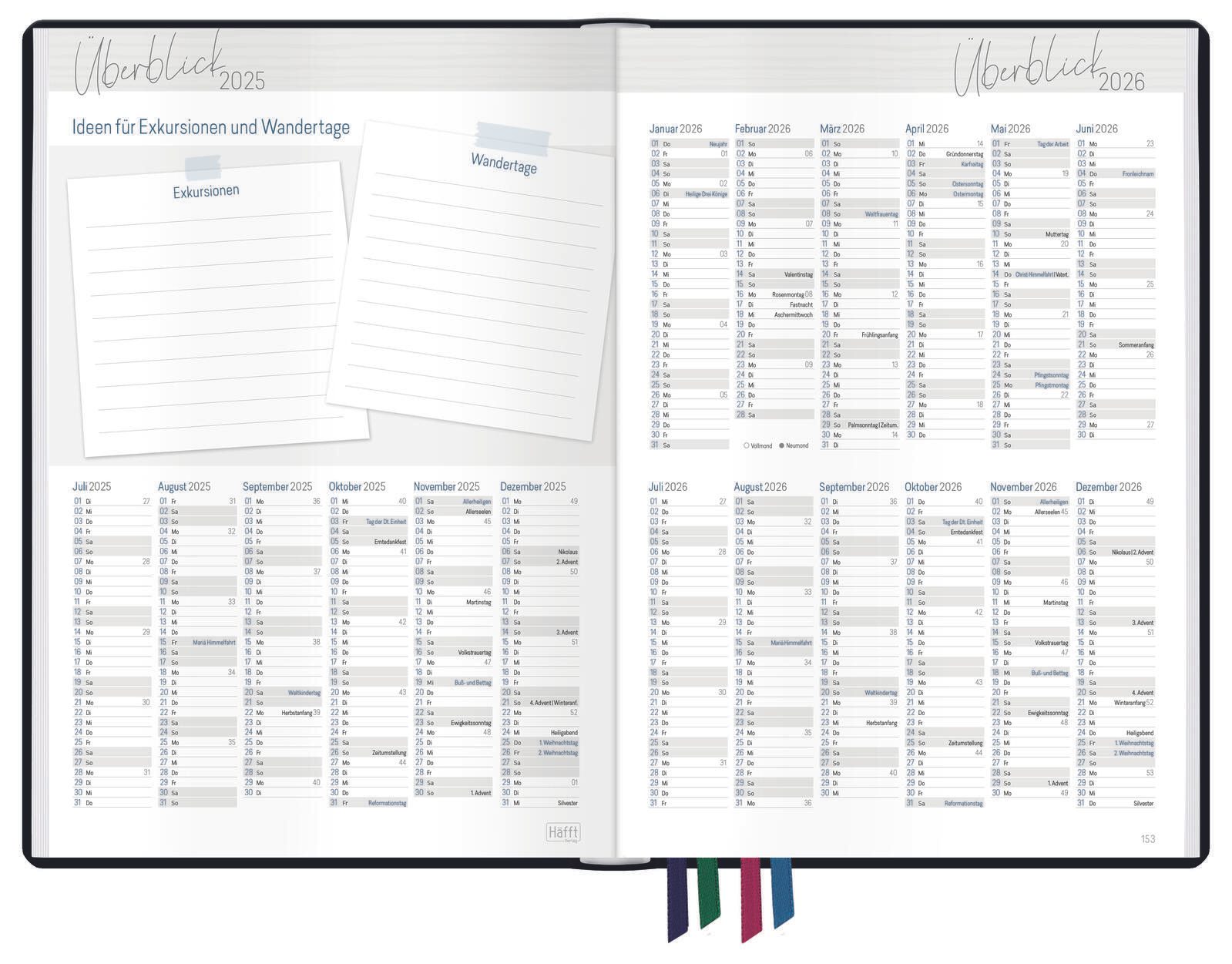 Mit den Maßen von 17,2 x 24,7 cm ist der Lehrerkalender kompakt und dennoch großzügig gestaltet, sodass ausreichend Platz für Notizen und Termine vorhanden ist. Der Kalender wird vom Häfft-Verlag in München hergestellt, einem erfahrenen Anbieter im Bereich Buch- und Tagebuchkalender. Dieses Produkt bietet eine klare und strukturierte Lösung für die Planung des Schuljahres 2025/2026.