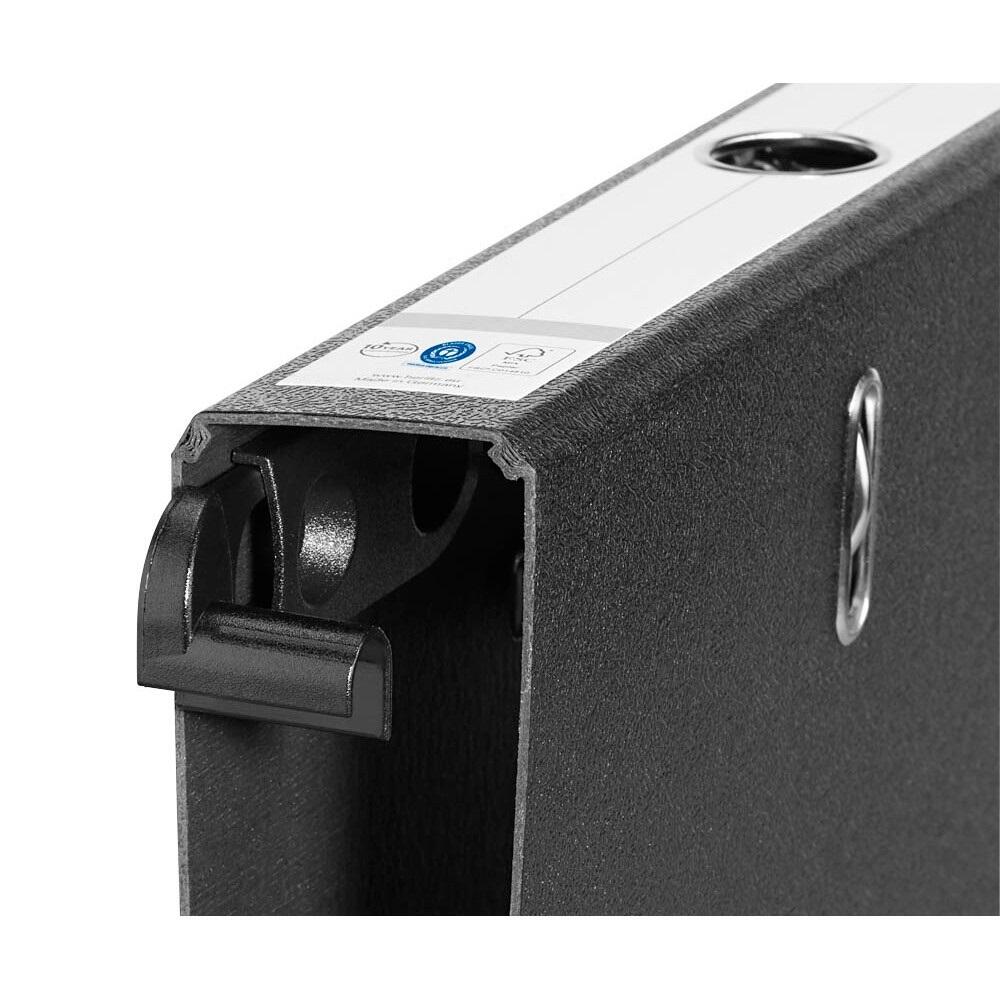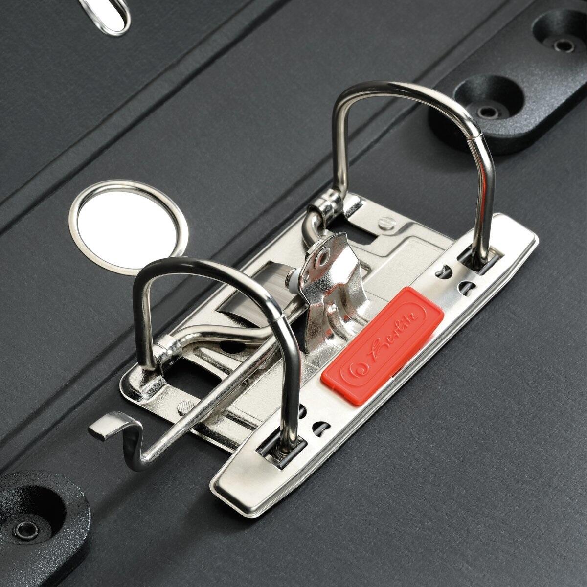 Der Herlitz maX.file A4 Hängeordner in elegantem Schwarz ist die ideale Lösung für die ordentliche Ablage deiner Dokumente im DIN-A4-Format. Mit einer Rückenbreite von 5,3 cm bietet er ausreichend Platz für deine Unterlagen und sorgt dafür, dass alles an seinem Platz bleibt. Der Ordner besteht aus hochwertigem Karton und besticht durch seine ansprechende Lederprägung-Optik, die nicht nur funktional, sondern auch stilvoll ist. Die präzise Hebelmechanik des Hängeordners garantiert eine lange Gebrauchsfähigkeit, sodass du dich auf eine zuverlässige Handhabung verlassen kannst. Die selbstklebenden Rückenschilder ermöglichen eine einfache Beschriftung und Organisation, damit du jederzeit schnell auf die benötigten Dokumente zugreifen kannst. Die Abmessungen von 35,0 x 26,3 cm machen ihn zu einem praktischen Begleiter im Büro oder zu Hause. Ein weiteres praktisches Detail ist das Daumenloch sowie die Aussparungen am vorderen Deckel, die das Herausnehmen von Dokumenten erleichtern. Mit einer Garantie von 10 Jahren bietet der Herlitz maX.file Hängeordner zudem eine langfristige Investition in deine Büroorganisation. Egal, ob für wichtige Verträge, Präsentationen oder persönliche Unterlagen, dieser Hängeordner ist die perfekte Wahl, um alles sicher und ordentlich zu verstauen.Technische Daten