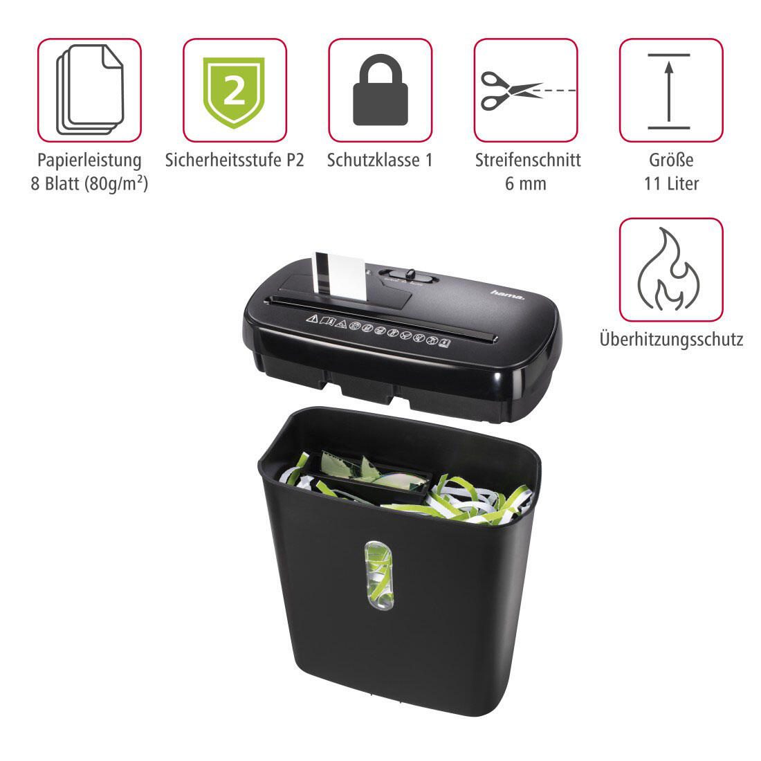 Hama Basic S8CD Aktenvernichter mit Streifenschnitt