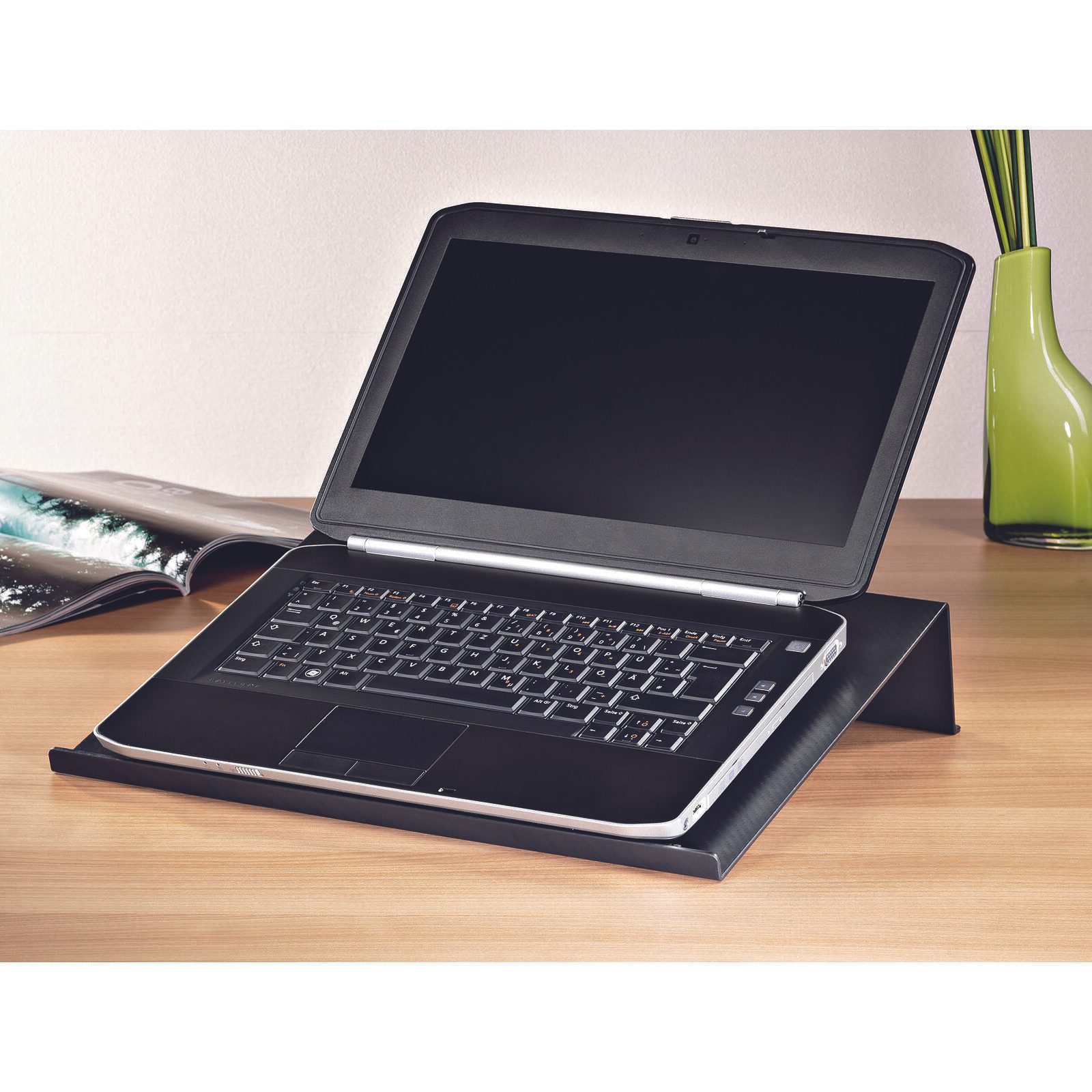 Der Hama Notebook-Ständer in elegantem Schwarz mit Carbonoptik bietet eine ideale Lösung für alle, die ihren Laptop komfortabel und ergonomisch nutzen möchten. Hergestellt aus hochwertigem Kunststoff, vereint dieser Ständer Stabilität und modernes Design, was ihn zu einem perfekten Begleiter für Ihr Home-Office oder den Arbeitsplatz macht. Mit einer Neigung von 15° sorgt er für eine optimale Sicht auf den Bildschirm, wodurch Nacken- und Rückenschmerzen während längerer Arbeitszeiten effektiv vorgebeugt werden.