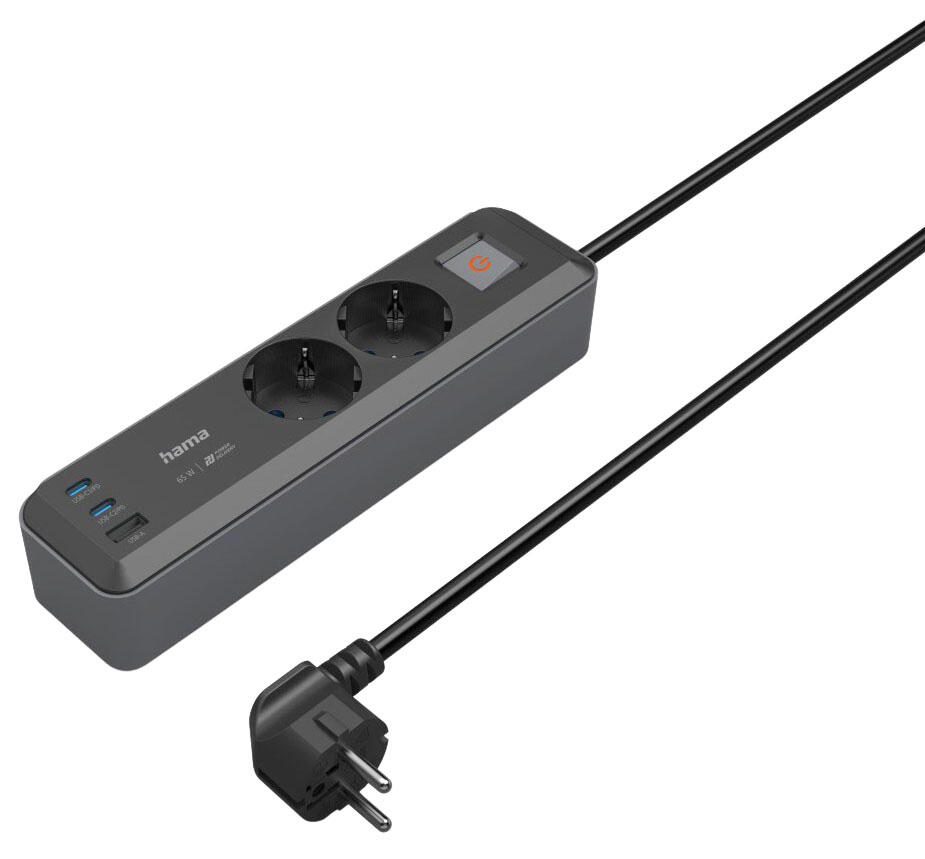Hama Steckdosenleiste mit 2-fach USB-C/A Anschluss in Schwarz