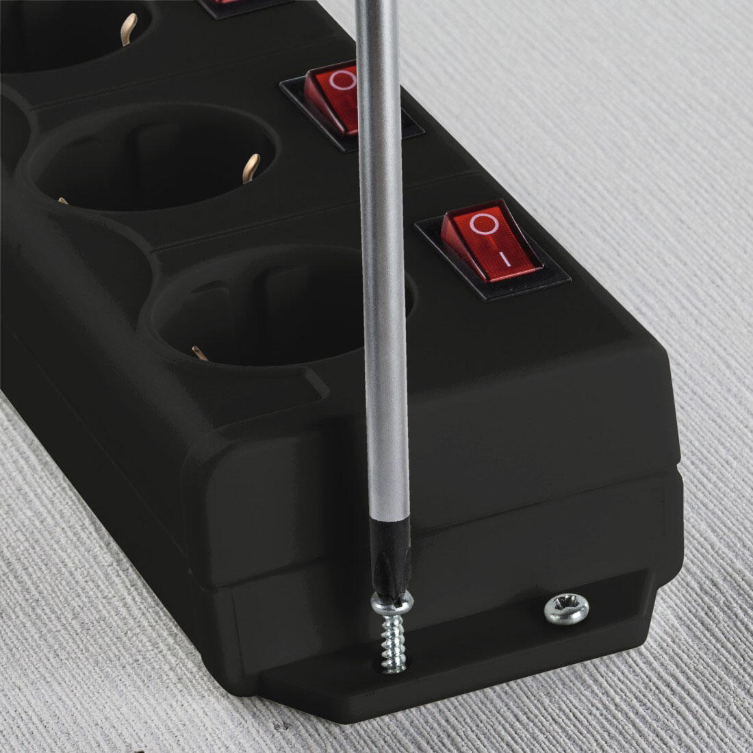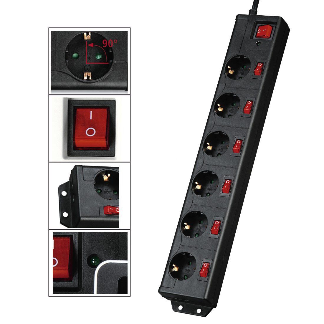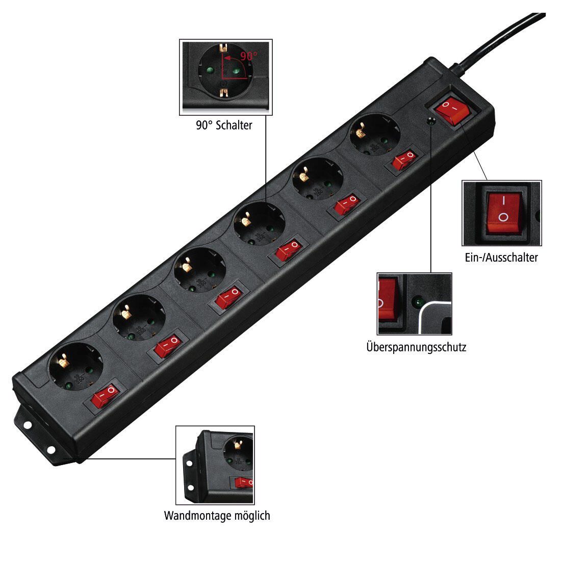 Die schwarze Steckdosenleiste von Hama bietet nicht nur sechs Steckdosen, sondern überzeugt auch mit einer erhöhten Sicherheit dank Berührungsschutz. Dank des Schalters kannst du die Steckdosenleiste komfortabel ein- und ausschalten, während der Überspannungsschutz deine Geräte vor Schäden durch plötzliche Spannungsschwankungen schützt.