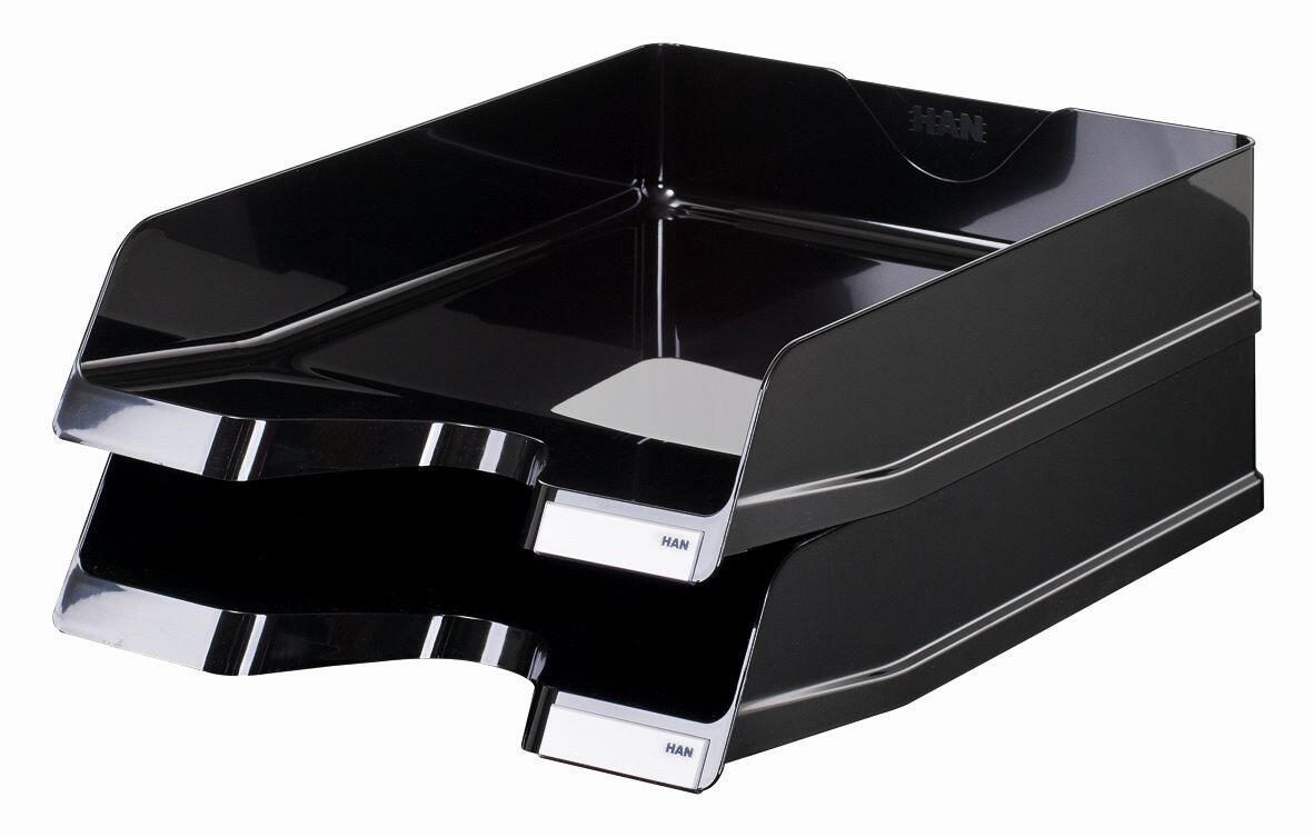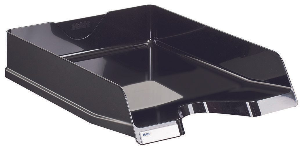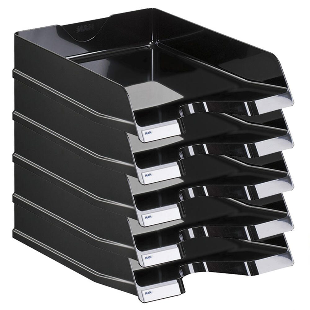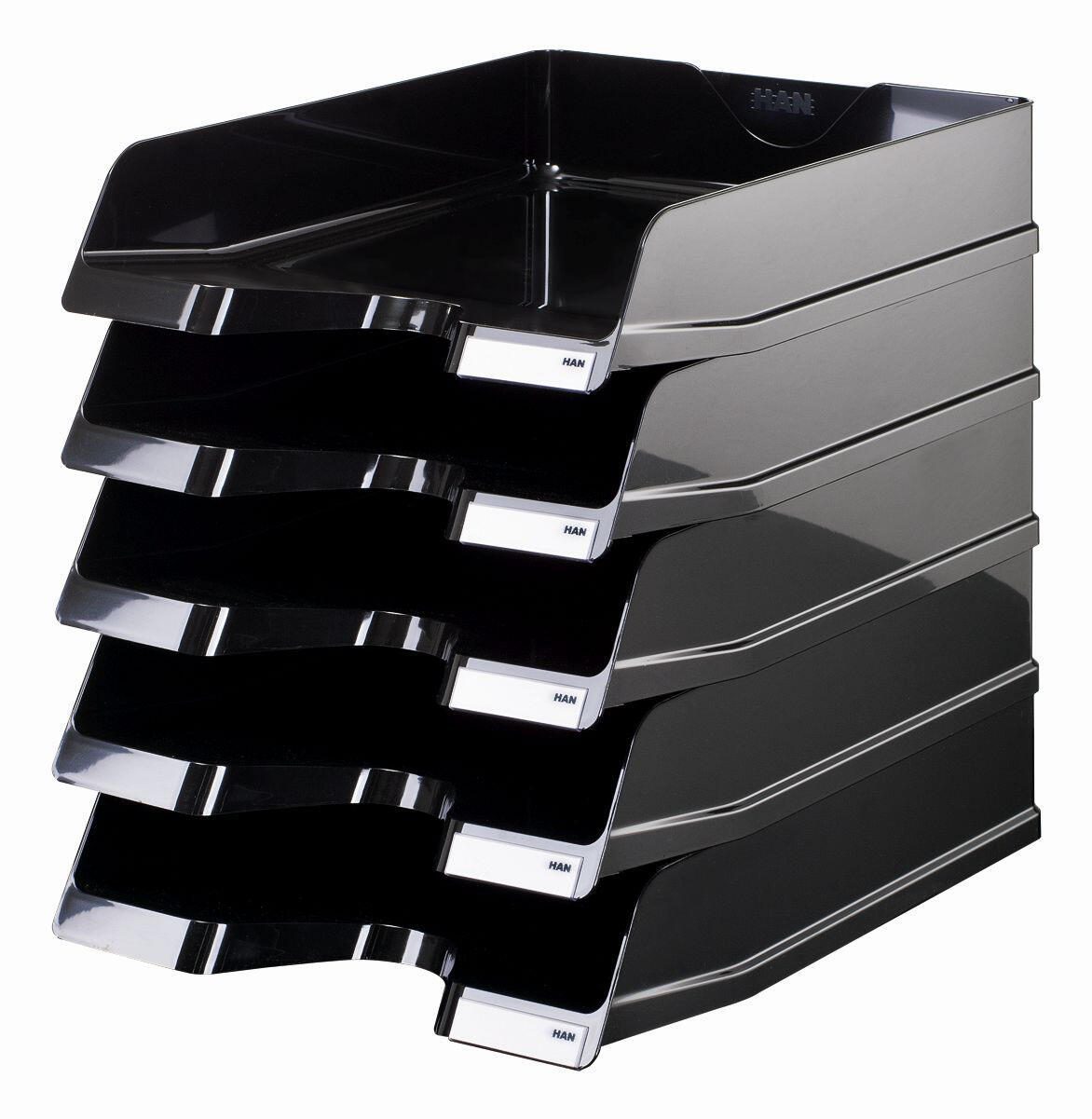 Du suchst nach einer praktischen Lösung, um deine Dokumente ordentlich und griffbereit zu organisieren? Die HAN Briefablagen DIN C4 in elegantem Schwarz sind die perfekte Wahl für dich. Mit ihrem hochglänzenden Finish verleihen sie deinem Arbeitsplatz eine stilvolle Note. Diese Briefablagen sind speziell für Formate im DIN C4 Standard geeignet, was bedeutet, dass sie genau die richtige Größe haben, um deine Briefe und Dokumente sicher zu verstauen. Das Außenmaß der Ablagen beträgt 25,2 x 34,0 x 6,5 cm, was genügend Platz für mehrere Dokumente bietet, ohne dabei sperrig zu wirken. Hergestellt aus hochwertigem Polystyrol sind diese Briefablagen nicht nur robust, sondern auch leicht zu reinigen und daher besonders pflegeleicht. Das zeitlose Schwarz passt zu jedem Einrichtungsstil und verleiht deinem Schreibtisch eine professionelle Atmosphäre. Diese praktischen Briefablagen kommen im praktischen 5er-Pack, sodass du auf einmal mehrere Ablagen zur Verfügung hast. Stapelbar angeordnet sparen sie außerdem wertvollen Platz auf deinem Schreibtisch oder Regal, ohne dabei an Funktionalität einzubüßen. Die HAN Briefablagen DIN C4 in Schwarz sind das ideale Accessoire, um deine Unterlagen geordnet zu halten und gleichzeitig einen Hauch von Eleganz in dein Büro zu bringen. Vertraue auf die Qualität von HAN, einem renommierten Hersteller, und optimiere deine Arbeitsumgebung mit diesen praktischen Briefablagen.Technische Daten