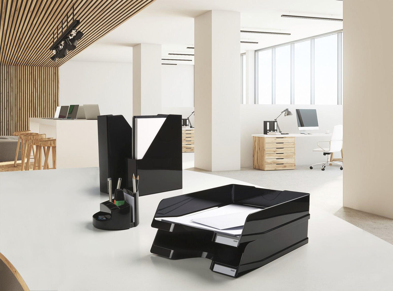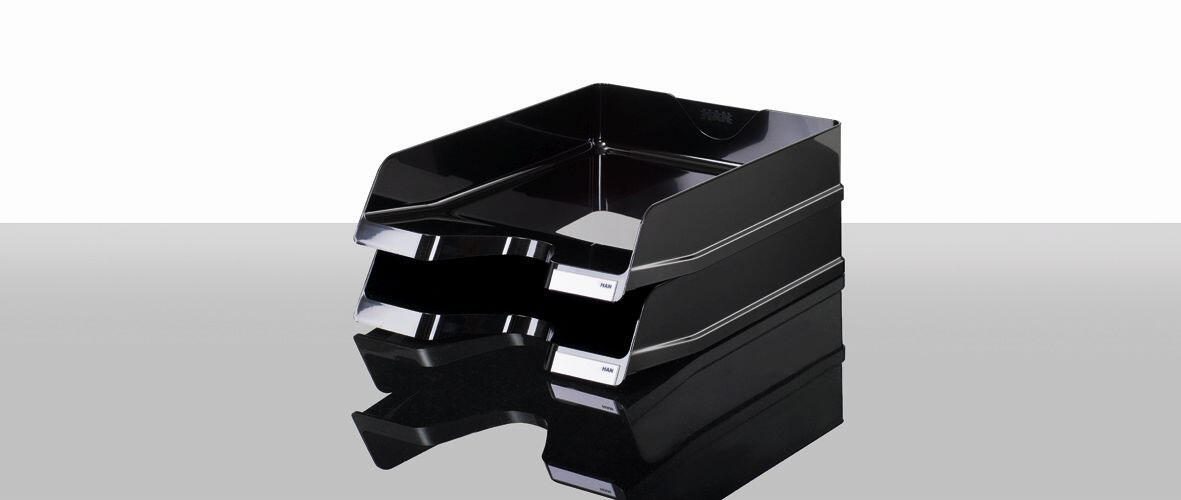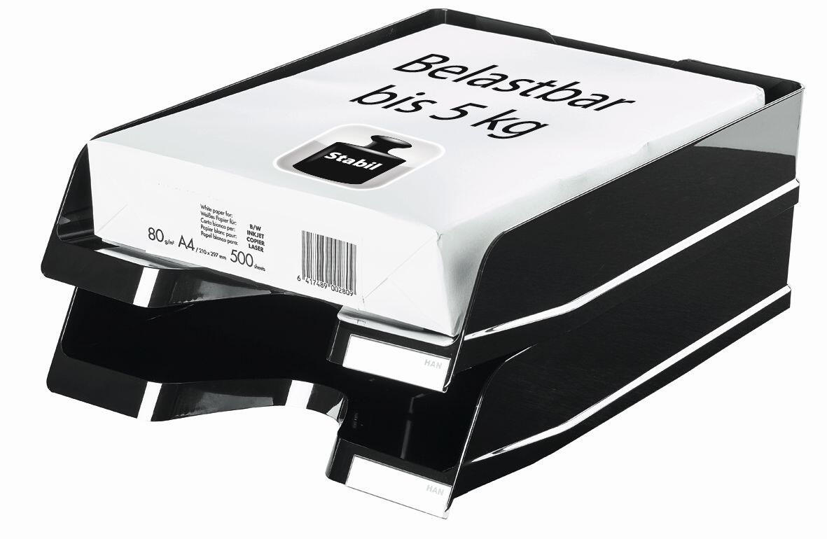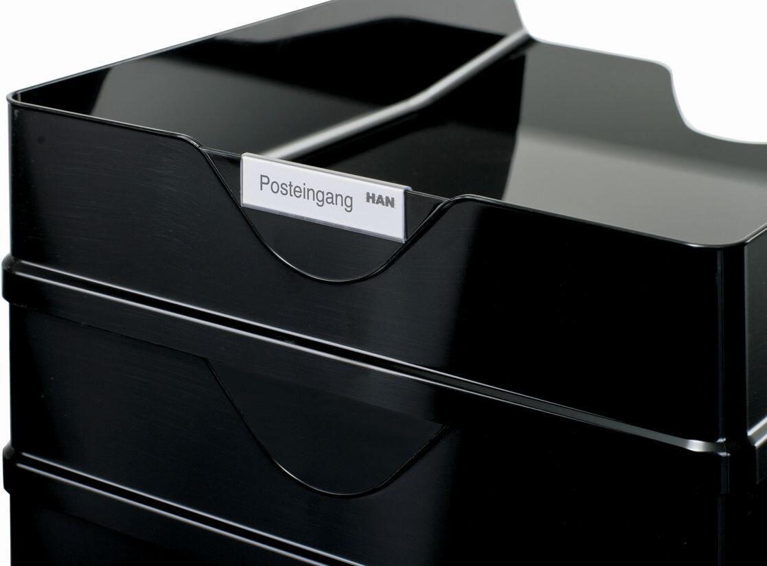 Du suchst nach einer praktischen Lösung, um deine Dokumente ordentlich und griffbereit zu organisieren? Die HAN Briefablagen DIN C4 in elegantem Schwarz sind die perfekte Wahl für dich. Mit ihrem hochglänzenden Finish verleihen sie deinem Arbeitsplatz eine stilvolle Note. Diese Briefablagen sind speziell für Formate im DIN C4 Standard geeignet, was bedeutet, dass sie genau die richtige Größe haben, um deine Briefe und Dokumente sicher zu verstauen. Das Außenmaß der Ablagen beträgt 25,2 x 34,0 x 6,5 cm, was genügend Platz für mehrere Dokumente bietet, ohne dabei sperrig zu wirken. Hergestellt aus hochwertigem Polystyrol sind diese Briefablagen nicht nur robust, sondern auch leicht zu reinigen und daher besonders pflegeleicht. Das zeitlose Schwarz passt zu jedem Einrichtungsstil und verleiht deinem Schreibtisch eine professionelle Atmosphäre. Diese praktischen Briefablagen kommen im praktischen 5er-Pack, sodass du auf einmal mehrere Ablagen zur Verfügung hast. Stapelbar angeordnet sparen sie außerdem wertvollen Platz auf deinem Schreibtisch oder Regal, ohne dabei an Funktionalität einzubüßen. Die HAN Briefablagen DIN C4 in Schwarz sind das ideale Accessoire, um deine Unterlagen geordnet zu halten und gleichzeitig einen Hauch von Eleganz in dein Büro zu bringen. Vertraue auf die Qualität von HAN, einem renommierten Hersteller, und optimiere deine Arbeitsumgebung mit diesen praktischen Briefablagen.Technische Daten
