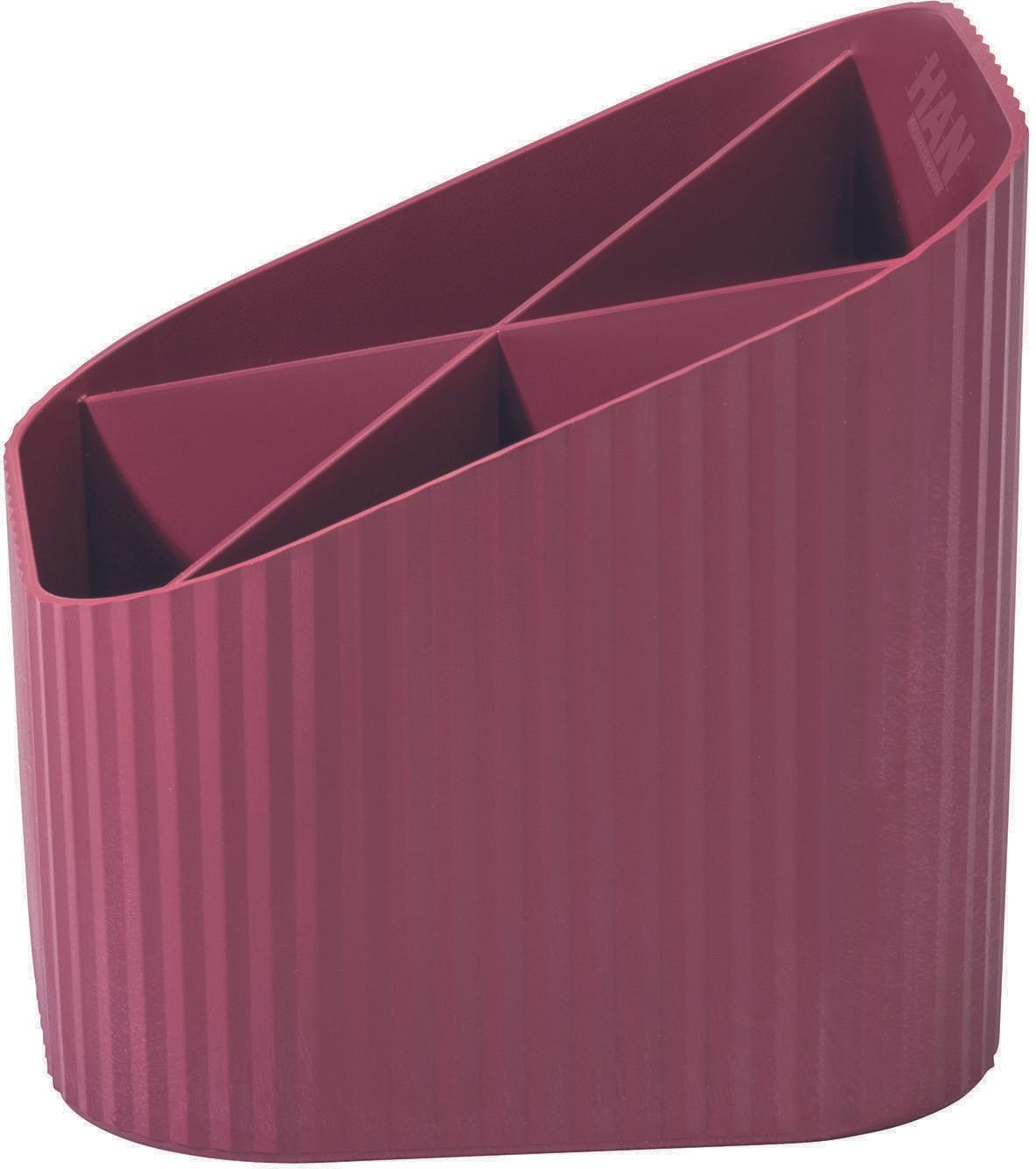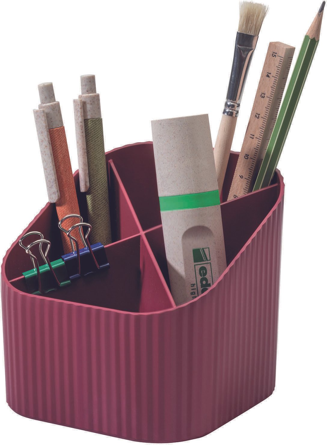 Dieser Stiftehalter verfügt über 4 Fächer, die dir eine organisierte Aufbewahrung ermöglichen. Das Material, aus dem der Stiftehalter gefertigt ist, ist hochwertiges Polystyrol, das für Langlebigkeit und Stabilität sorgt. Das leuchtend rote Design verleiht deinem Arbeitsplatz eine frische Note und bringt Farbe in den Alltag.