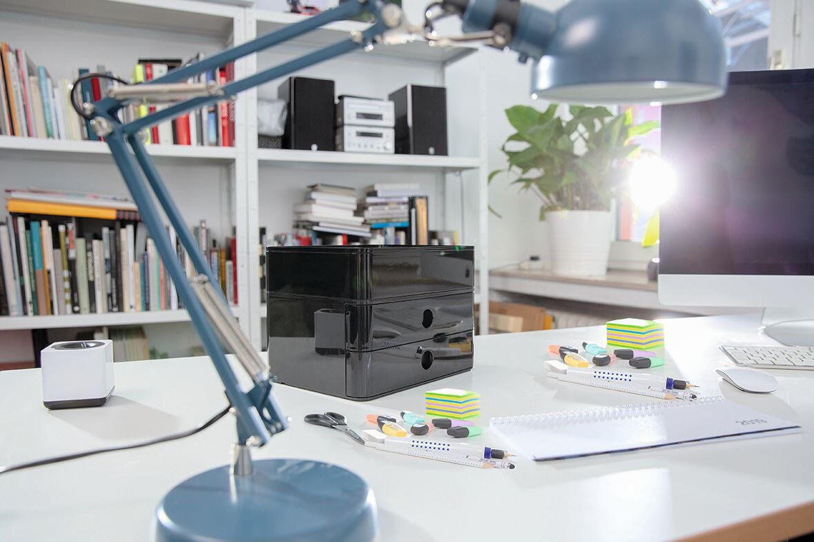 Die HAN Schubladenbox 1100-13 A5 ist die ideale Lösung für eine ordentliche und strukturierte Aufbewahrung. Mit den kompakten Maßen von 26,0 x 19,5 x 19,0 cm bietet sie ausreichend Platz für deine A5-Dokumente und Utensilien. Die elegante schwarze Farbe der Schublade fügt sich harmonisch in jedes Büro- oder Wohnambiente ein und sorgt für einen modernen Look. Diese praktische Schubladenbox verfügt über eine integrierte Utensilienbox, die dir hilft, Schreibwaren, Notizen und andere kleine Gegenstände übersichtlich zu organisieren. Der Einsatz von hochwertigem ABS-Kunststoff gewährleistet nicht nur eine hohe Stabilität, sondern auch eine lange Lebensdauer des Produkts. Zudem ist die Schubladenbox stapelbar, was dir ermöglicht, den verfügbaren Raum optimal zu nutzen und gleichzeitig ein aufgeräumtes Erscheinungsbild zu bewahren. Die HAN Schubladenbox ist nicht nur funktional, sondern auch ästhetisch ansprechend. Sie ist die perfekte Wahl für alle, die Wert auf Ordnung und Design legen. Egal ob im Büro, im Homeoffice oder im Wohnbereich – diese Schubladenbox bringt Struktur in deinen Alltag und hilft dir, den Überblick zu behalten. Mit der HAN Schubladenbox 1100-13 A5 entscheidest du dich für ein Produkt, das sowohl praktisch als auch stilvoll ist.Technische Daten