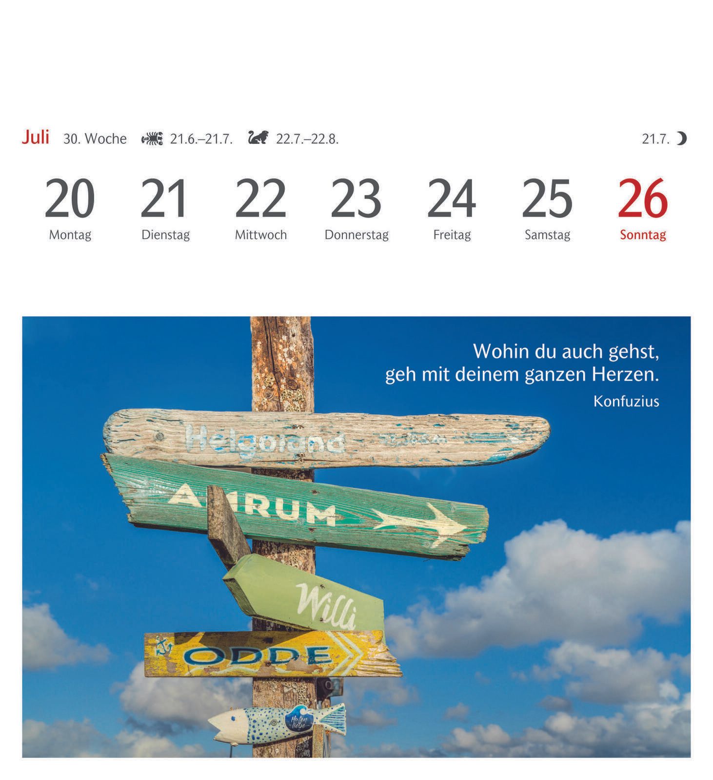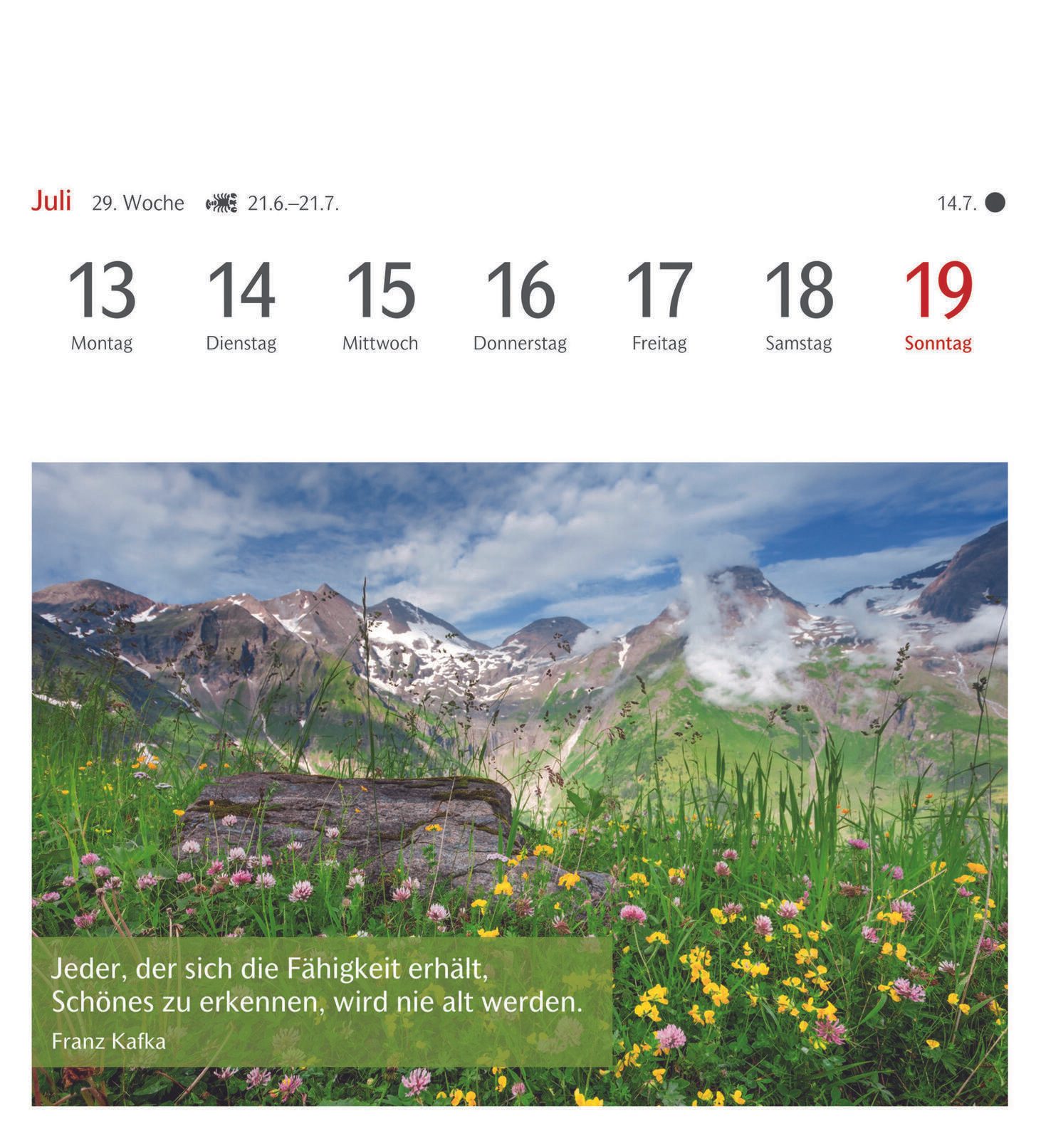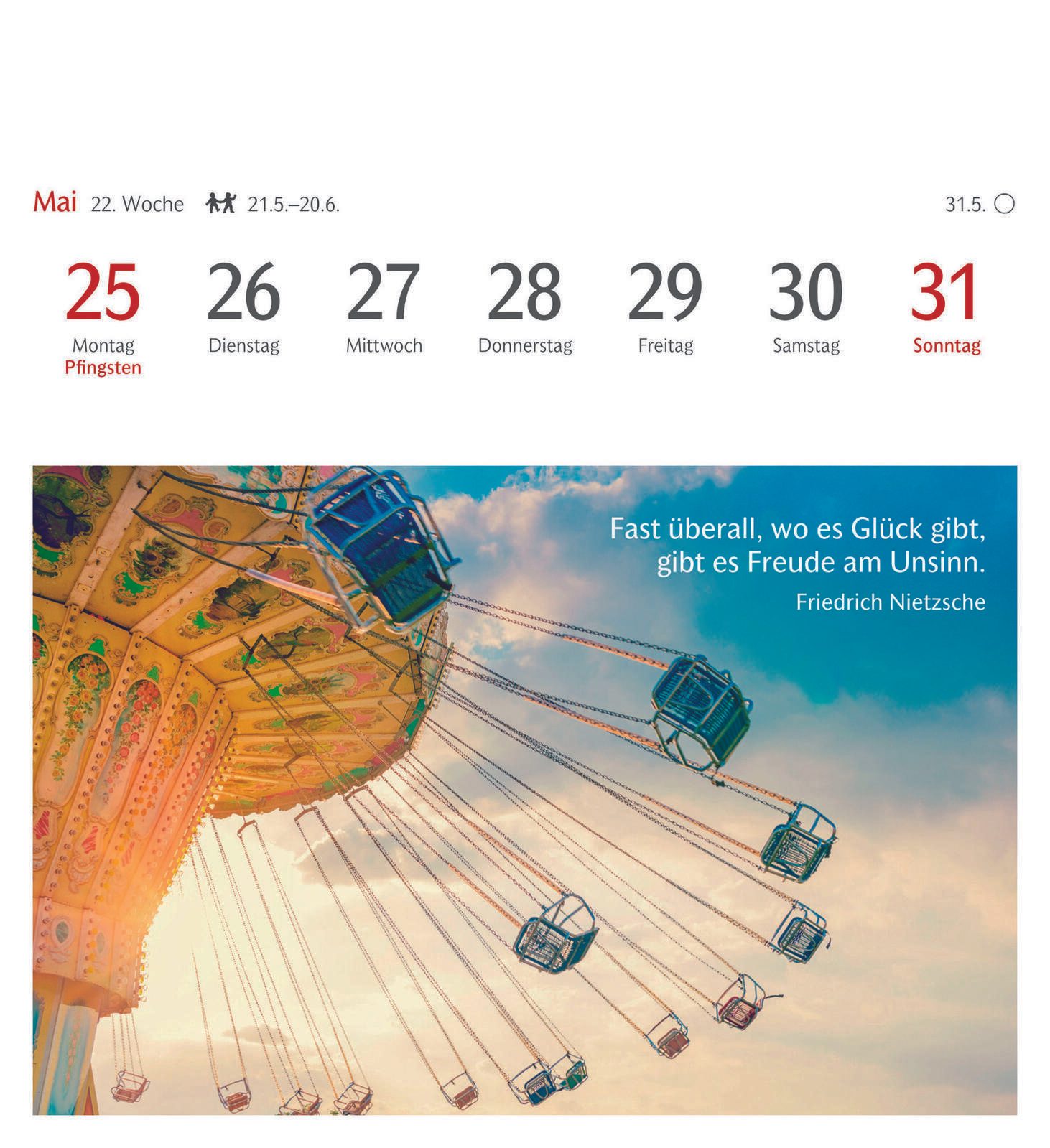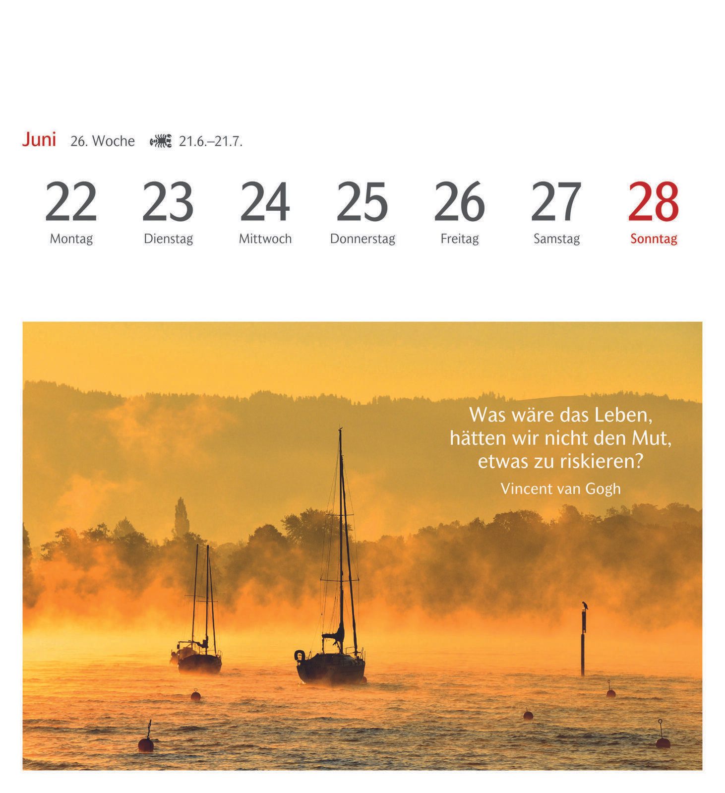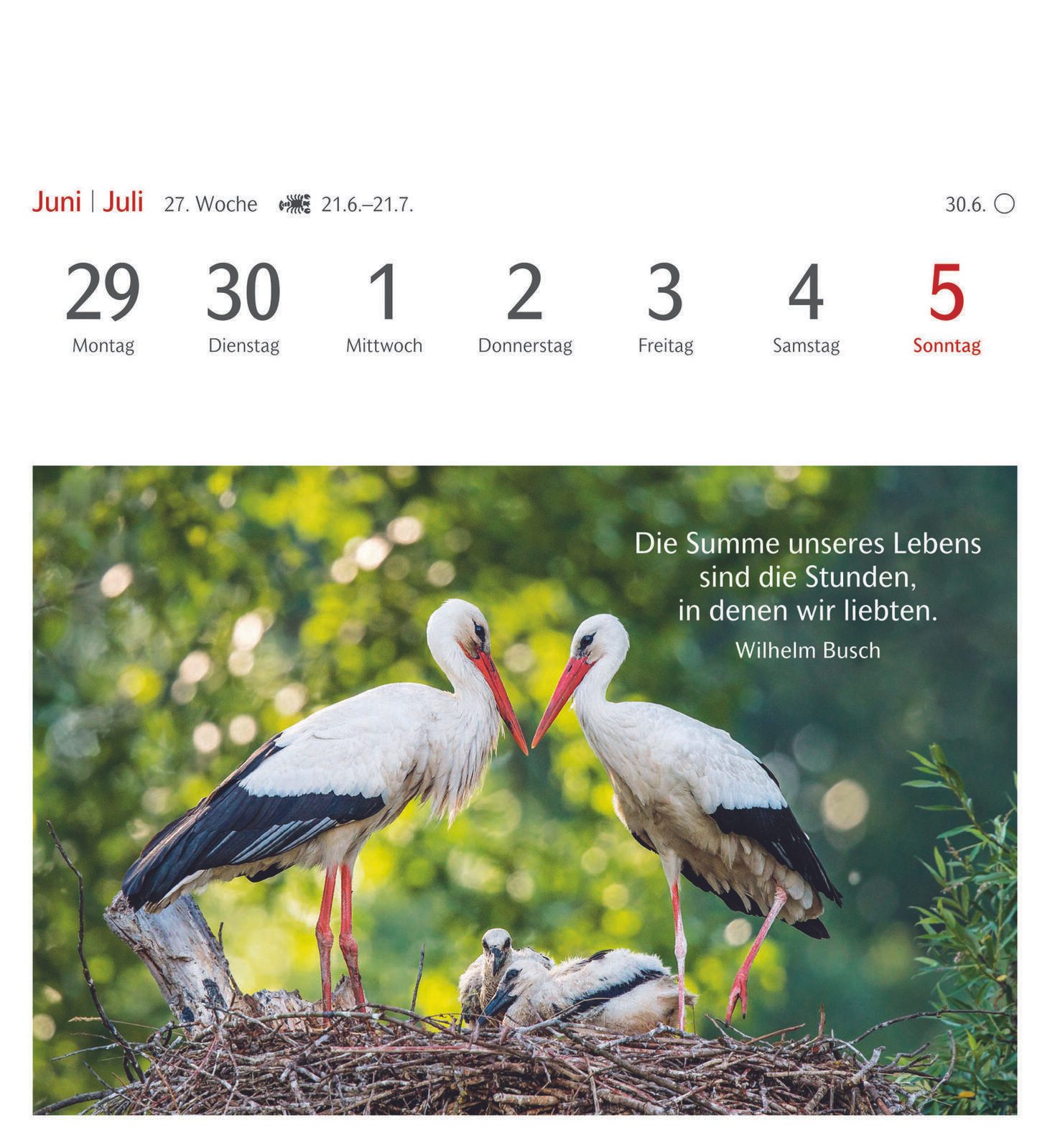 Die Bindung des Kalenders erfolgt durch Klebung, was eine flache und stabile Verbindung der Seiten gewährleistet. Das Material des Kalenders ist Karton, das sowohl robust als auch umweltfreundlich ist. Die Farbgestaltung des Kalenders und der Bindung ist dezent und fügt sich gut in verschiedene Wohn- oder Arbeitsumgebungen ein.