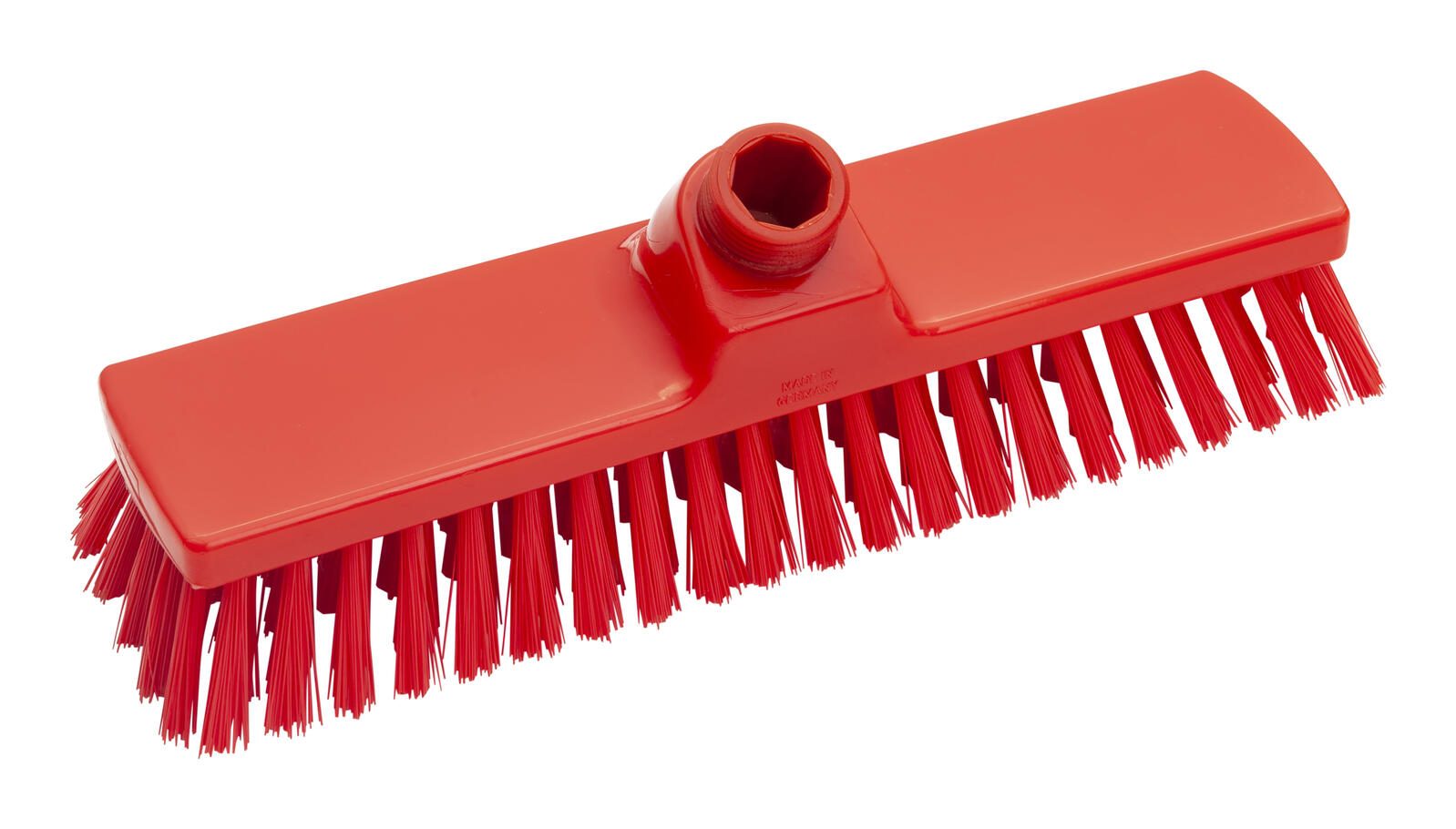 Der haug® bürsten Besenkopf mit einer Breite von 30 cm ist speziell für den Innenbereich konzipiert. Er besteht aus robustem Kunststoff und verfügt über Borsten aus Polybutylenterephthalat (PBT), die sich durch ihre Langlebigkeit und gute Reinigungswirkung auszeichnen. Die rote Farbe des Besenkopfs sorgt für eine klare optische Zuordnung und erleichtert die Nutzung in verschiedenen Bereichen.
