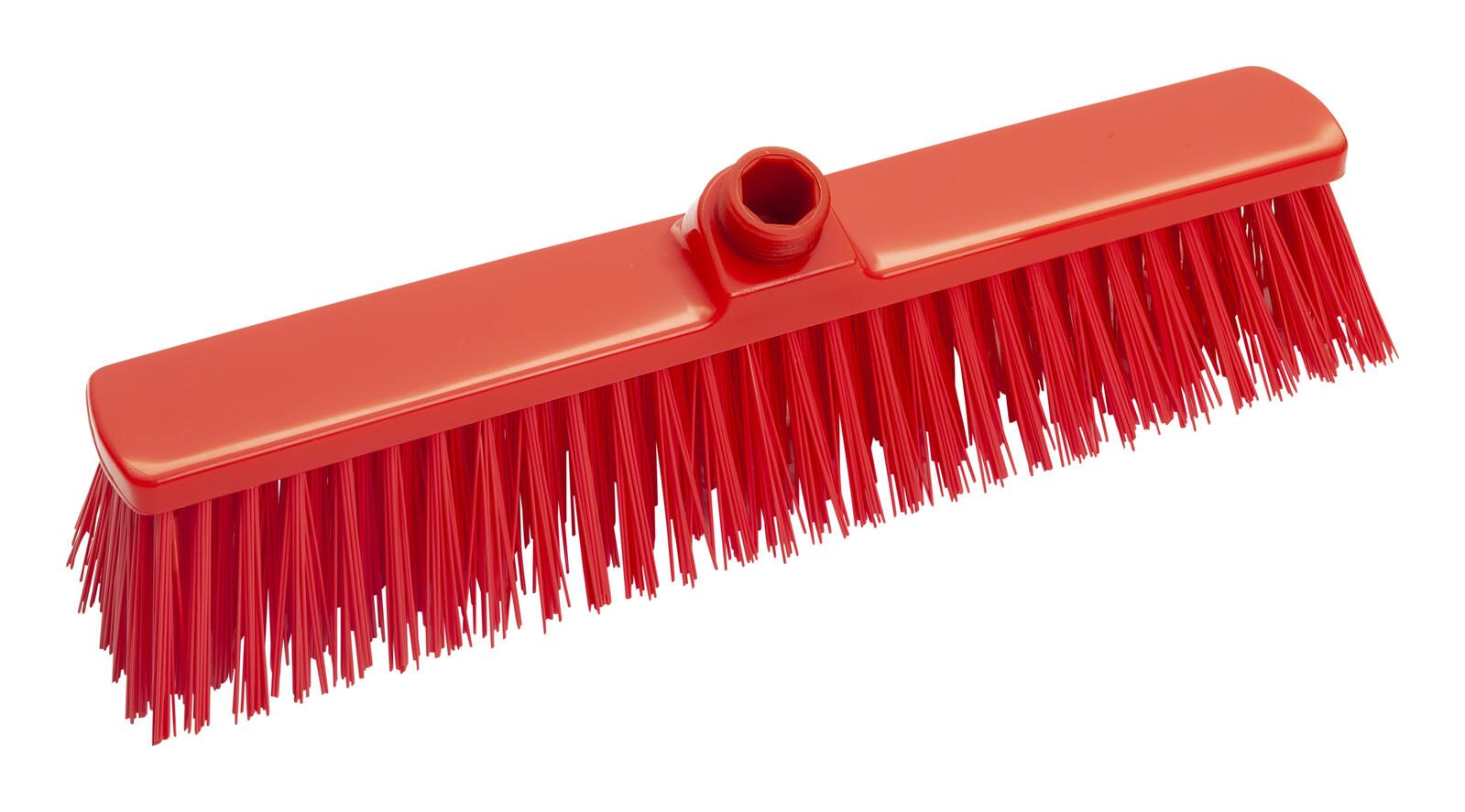 Der haug® bürsten Besenkopf mit einer Breite von 40 cm ist speziell für den Innenbereich konzipiert. Er besteht aus robustem Kunststoff und ist mit Borsten aus Polybutylenterephthalat (PBT) ausgestattet, einem widerstandsfähigen Material, das eine effektive Reinigung gewährleistet. Die Farbe des Besenkopfes ist rot, was ihn optisch klar erkennbar macht.