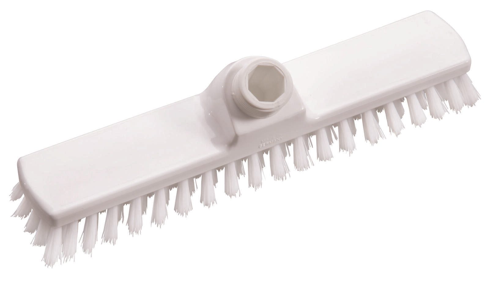 Das Material des Schrubbers besteht aus langlebigem Kunststoff, während die Borsten aus Polybutylenterephthalat (PBT) gefertigt sind. Diese Kombination sorgt für eine effektive Reinigung bei gleichzeitig hoher Beständigkeit. Der Schrubber ist ungeschlitzt und entspricht den Anforderungen der HACCP-Richtlinien, was ihn auch für hygienisch sensible Bereiche geeignet macht.
