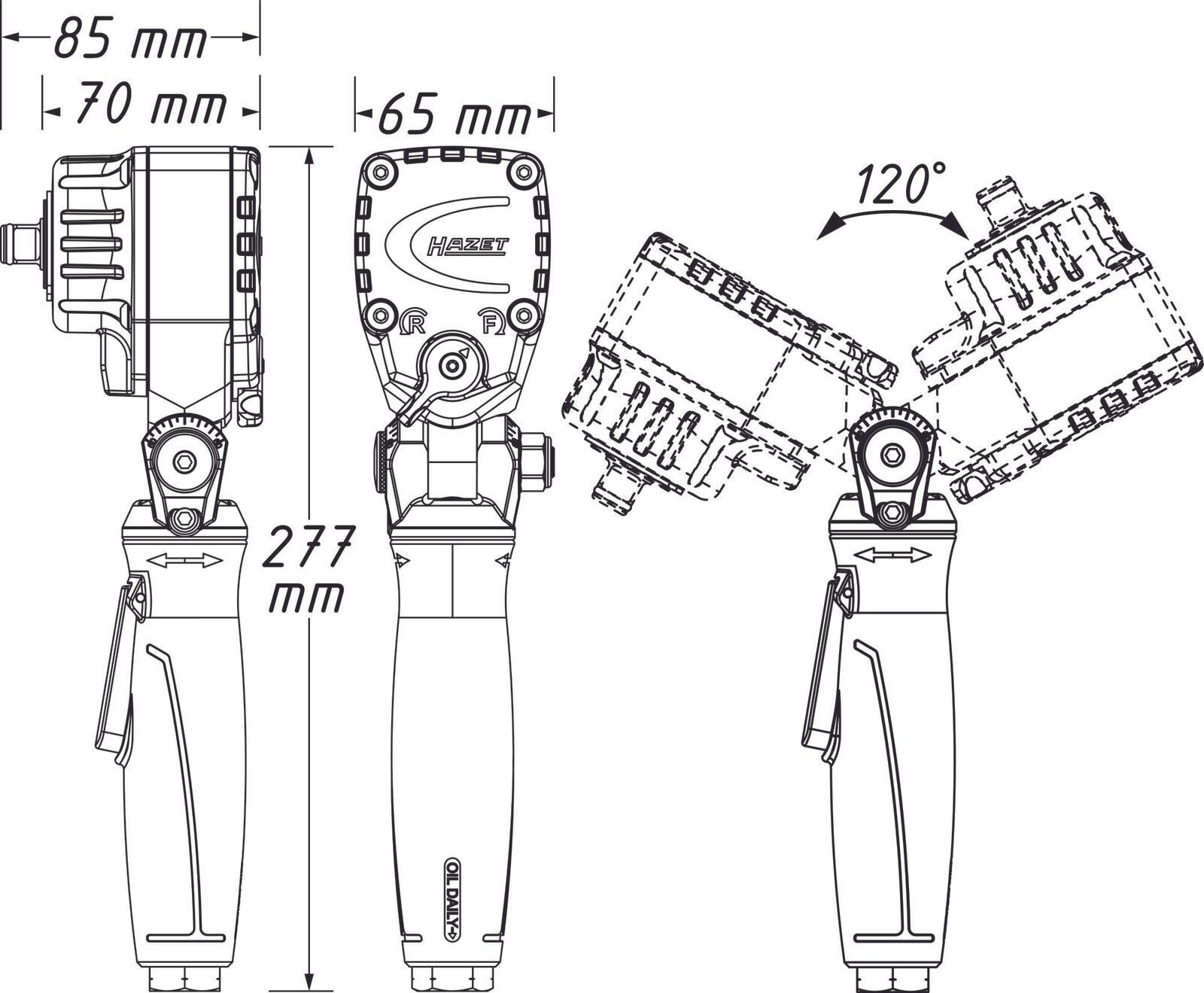 - Besonderheiten: Um die eigene Achse verstellbarer Griff / Trigger zur optimalen Handhabung ermöglicht Betätigung in jeder Position, betätigen von Bremssattelverschraubungen sowie anderer schwer erreichbarer Schraubfälle