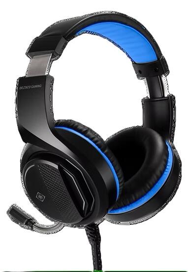 DELTACO Headset für Sony Playstation 5 2m Kabel, 40mm Element, schwarz / blau