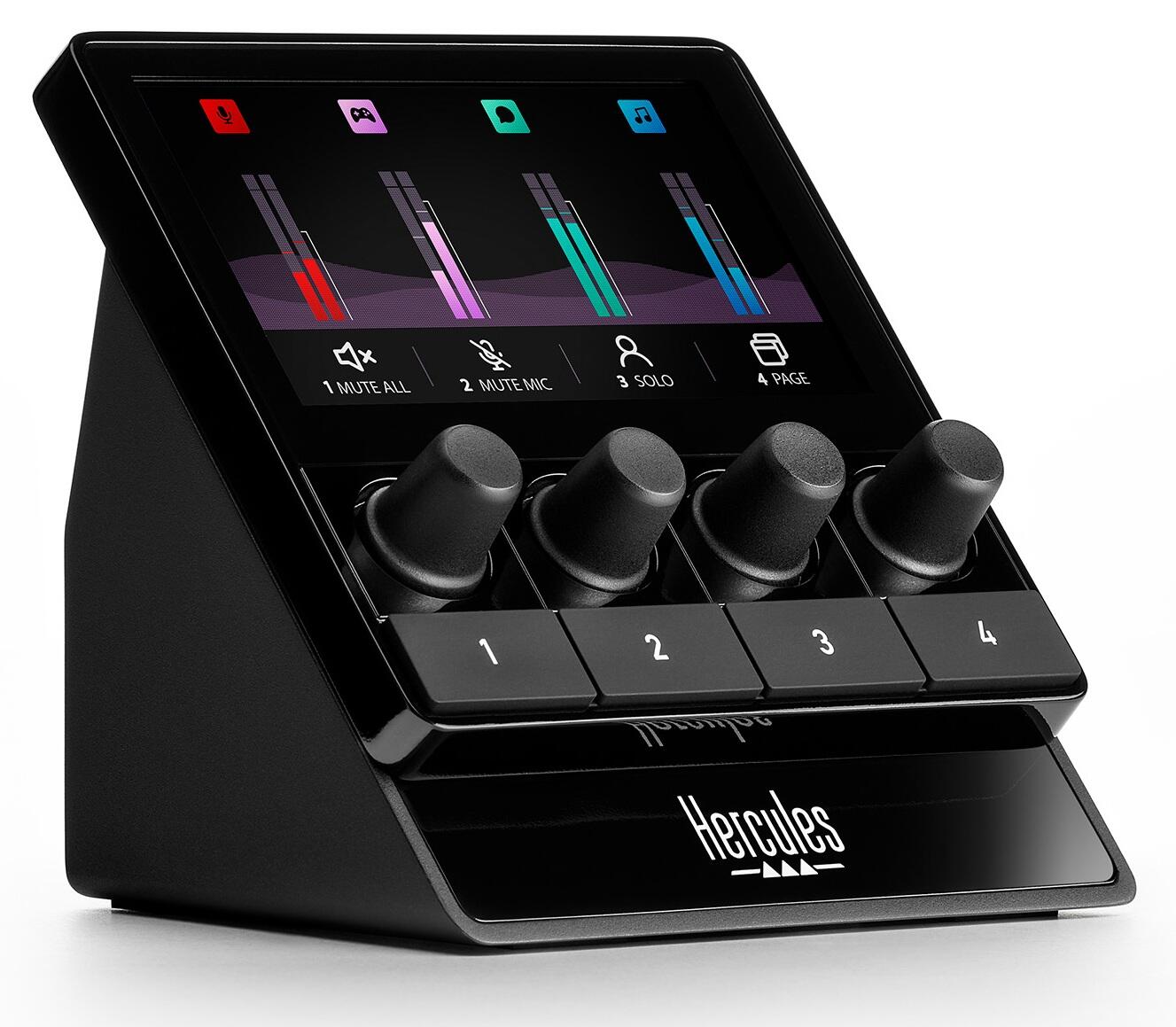 Der Hercules Stream 100 ist ein einfach zu bedienender und effektiver Audio-Controller, mit dem Sie nicht mehr über die Audio-Einstellungen nachdenken müssen und während Ihrer Livestreams schnell reagieren können. Dank dieses Audio-Controllers mit eingebautem LCD-Display können Sie alle Ihre Audioquellen in Echtzeit verwalten: Spiele, Chat-Software, Musik, USB-Mikrofon, und mehr. Mit dem Hercules Stream 100 können Sie den Soundpegel jedes Audiotracks direkt auf dem Display individuell betrachten und kontrollieren.