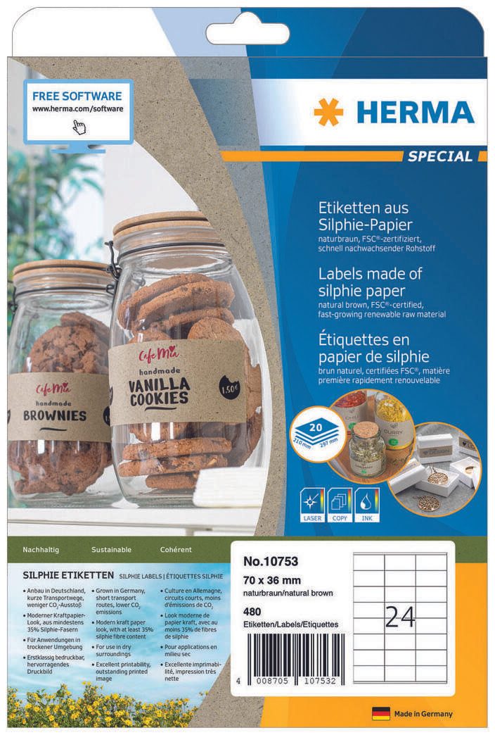 Die HERMA Etikett.Silphie 70x36 ist die ideale Lösung für all deine Beschriftungsbedürfnisse. Mit einer praktischen Etikettengröße von 70,0 x 36,0 mm bieten diese rechteckigen Etiketten ausreichend Platz für klare und präzise Informationen. Die braune Farbe verleiht den Etiketten ein ansprechendes und professionelles Aussehen, das sich in verschiedenen Anwendungen hervorragend macht. Jede Packung enthält 20 Blatt, sodass du genügend Etiketten zur Verfügung hast, um deine Projekte effizient zu gestalten. Ob im Büro, im Lager oder für den privaten Gebrauch, die HERMA Etiketten sind vielseitig einsetzbar und erleichtern die Organisation und Kennzeichnung von Produkten und Dokumenten. Dank der hohen Qualität der HERMA Etiketten kannst du dich auf eine ausgezeichnete Haftung und Druckergebnisse verlassen. Sie sind kompatibel mit den gängigen Druckern, was bedeutet, dass du deine Etiketten schnell und unkompliziert selbst gestalten und drucken kannst. Die Benutzerfreundlichkeit dieser Etiketten spart dir wertvolle Zeit und sorgt dafür, dass deine Beschriftungen immer professionell aussehen. Die HERMA Etikett.Silphie 70x36 ist nicht nur praktisch, sondern auch umweltbewusst. Die Verwendung von nachhaltigen Materialien macht diese Etiketten zu einer verantwortungsvollen Wahl für umweltbewusste Verbraucher. Mit diesen Etiketten trägst du aktiv zur Reduzierung von Plastikmüll bei und unterstützt eine nachhaltige Zukunft. Entscheide dich für die HERMA Etikett.Silphie 70x36 und erlebe die Vorteile von hochwertigen, vielseitigen und umweltfreundlichen Etiketten, die deinen Anforderungen gerecht werden.Technische Daten