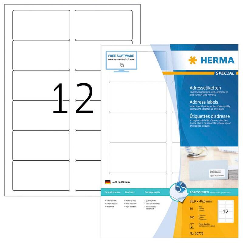 Jede Packung enthält 80 Blatt, sodass du ausreichend Etiketten zur Verfügung hast, um deine Anforderungen zu erfüllen. Die HERMA Adressetiketten sind speziell für den Einsatz mit Inkjet-Druckern konzipiert, was bedeutet, dass du deine Etiketten in bester Qualität und mit lebendigen Farben drucken kannst. Die hohe Druckqualität sorgt dafür, dass deine Adressetiketten professionell und ansprechend aussehen, was besonders beim Versand von wichtigen Dokumenten oder Geschenken von Vorteil ist.