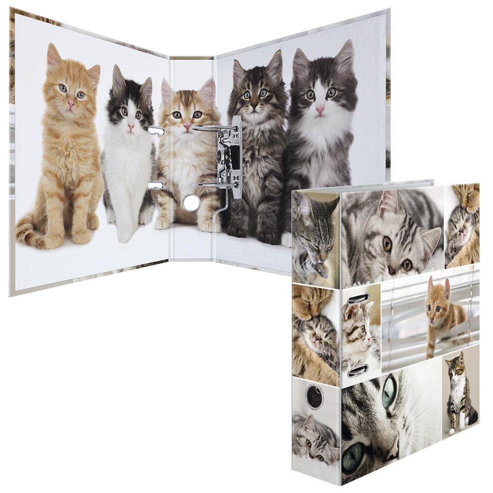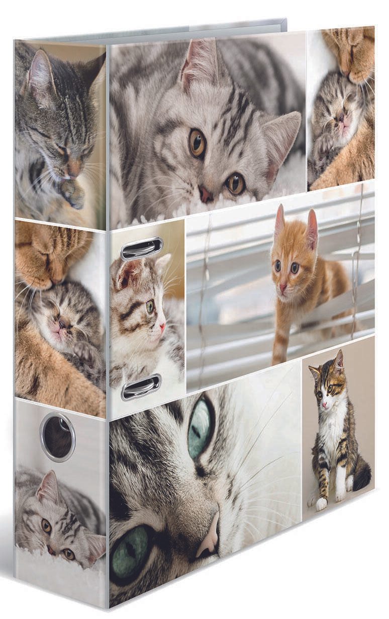 Der HERMA Motivordner mit einer Rückenbreite von 7 cm ist die perfekte Lösung für die ordentliche Ablage deiner Dokumente im DIN A4 Format. Dieser Ordner besticht nicht nur durch seine Funktionalität, sondern auch durch sein ansprechendes Design, das mit einem bezaubernden Katzenmotiv verziert ist. Der hochwertige Karton sorgt für eine glatte und ansprechende Optik, die in jedem Büro oder Zuhause einen tollen Akzent setzt. Mit der Qualitäts-Hebelmechanik lässt sich der Ordner mühelos öffnen und schließen, sodass du jederzeit schnell auf deine Unterlagen zugreifen kannst. Die integrierten Raumsparschlitze ermöglichen eine platzsparende Aufbewahrung, während das praktische Griffloch das Handling des Ordners erleichtert. Egal, ob du wichtige Unterlagen, Präsentationen oder kreative Projekte aufbewahren möchtest, dieser Motivordner bietet ausreichend Platz und eine ansprechende Möglichkeit, alles ordentlich zu organisieren. Die Rückenbreite von 7 cm bietet nicht nur ausreichend Stauraum, sondern sorgt auch dafür, dass der Ordner stabil und langlebig ist. Der HERMA Motivordner ist nicht nur funktional, sondern bringt auch Freude in deinen Arbeitsbereich. Das Katzenmotiv spricht Tierliebhaber an und macht das Dokumentenmanagement zu einem angenehmen Erlebnis. Mit diesem Ordner von HERMA bringst du nicht nur Ordnung in dein Büro, sondern setzt auch einen stilvollen Akzent, der deine Persönlichkeit widerspiegelt. Der HERMA Motivordner Katzen ist die ideale Wahl für alle, die Wert auf Qualität und Design legen.Technische Daten