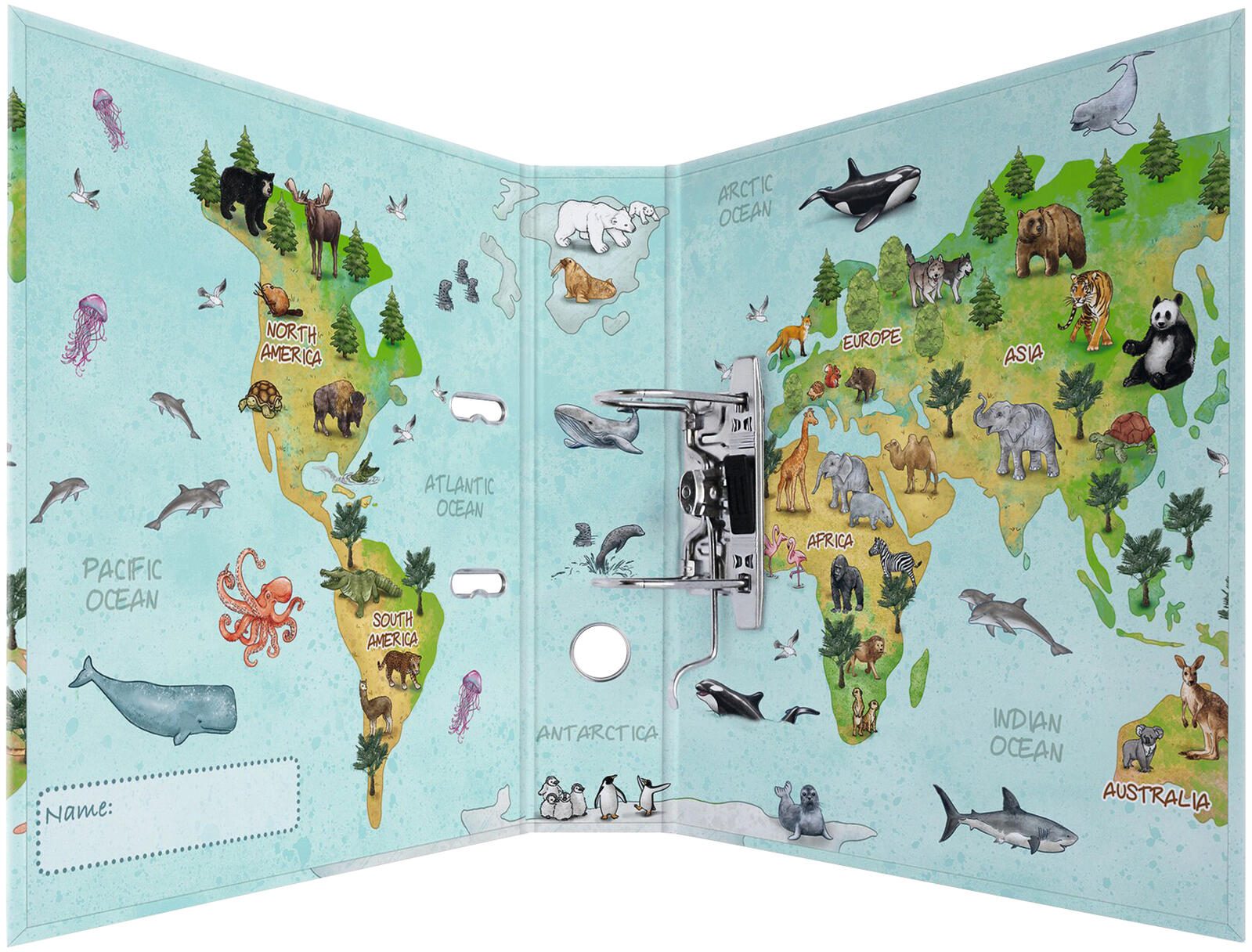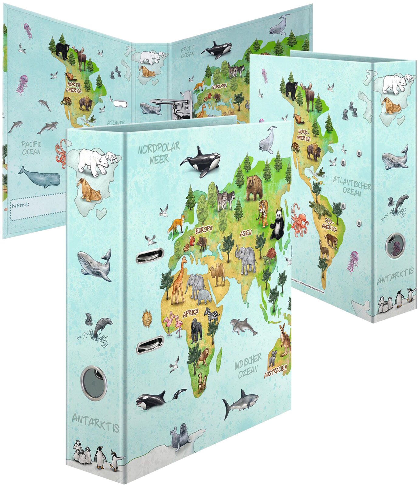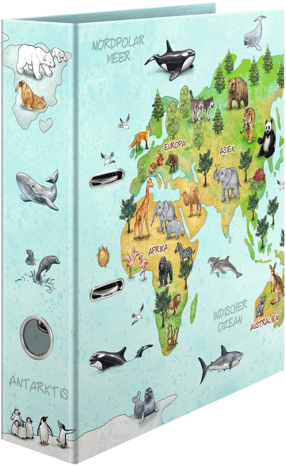 Der HERMA Motivordner Weltkarte ist ein praktischer Ordner im Format DIN A4 mit einer Rückenbreite von 7,0 cm. Er ist speziell für die übersichtliche Ablage und Organisation von Dokumenten in diesem gängigen Format konzipiert. Das Motiv zeigt eine Weltkarte, die dem Ordner eine ansprechende Optik verleiht und ihn von einfachen Standardordnern unterscheidet.