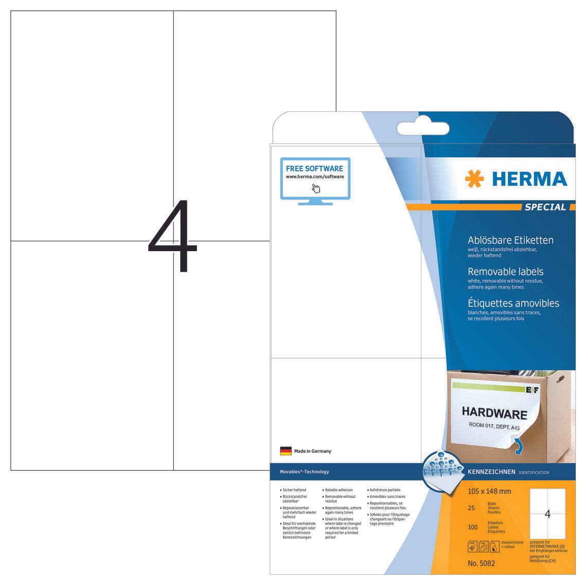 • Etikettengröße: 105,0 x 148,0 mm