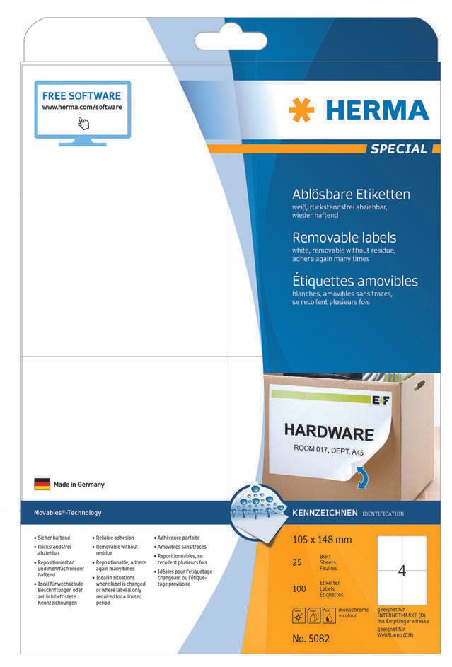 HERMA Etiketten 5082 weiß 105,0 x 148,0 mm 1 Pack = 25 Blatt