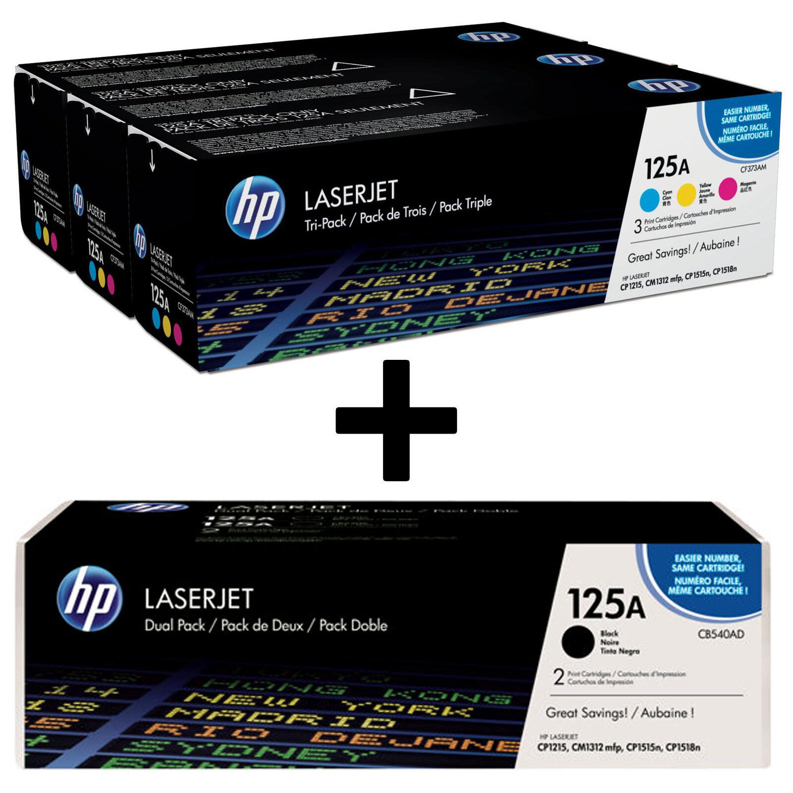 HP Original 125A Toner 5er Set schwarz (2), cyan, magenta, gelb Tri-Pack CF373AM, Doppel-Pack CB540AD