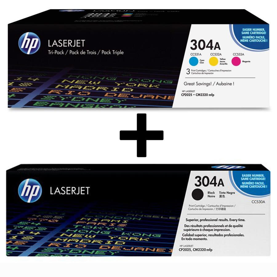 HP Original 304A Toner 4er Set schwarz, cyan, magenta, gelb Tri-Pack CF372AM, CC530A