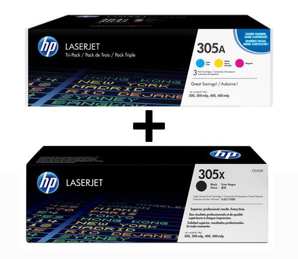 HP Original 305A/305X Toner - 4er Multipack (CF370AM, CE410X) cyan, magenta, gelb, schwarz