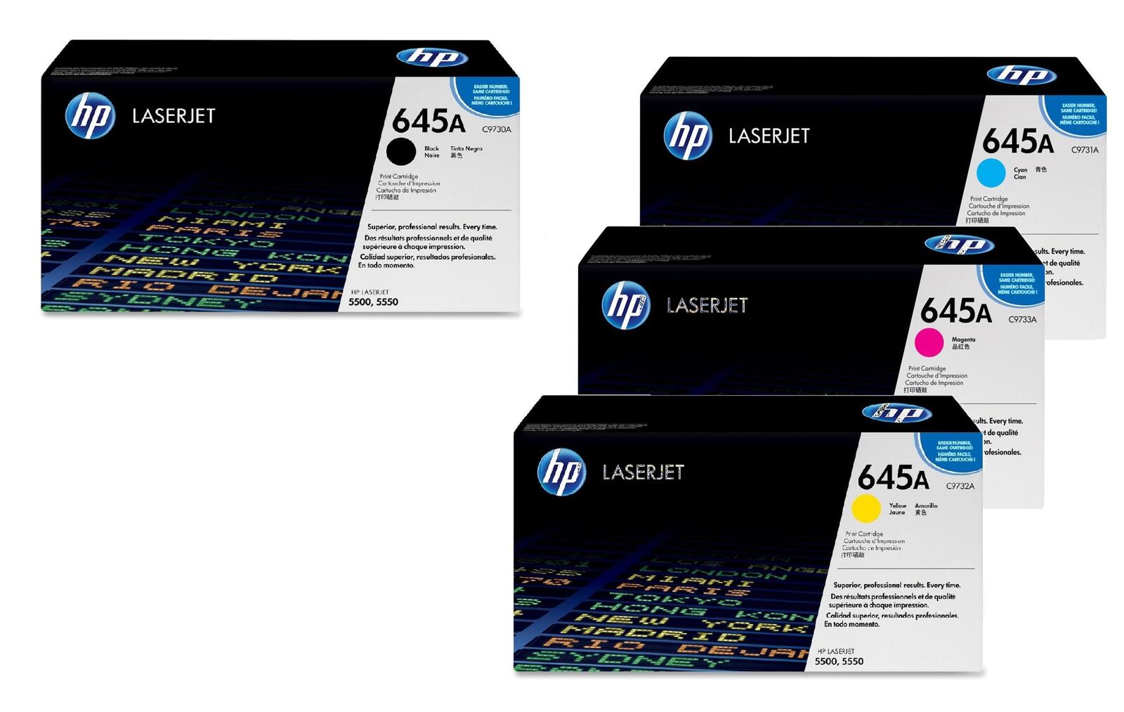 HP Original 645A Toner 4er Set schwarz, cyan, magenta, gelb C9730A, C9731A, C9733A, C9732A