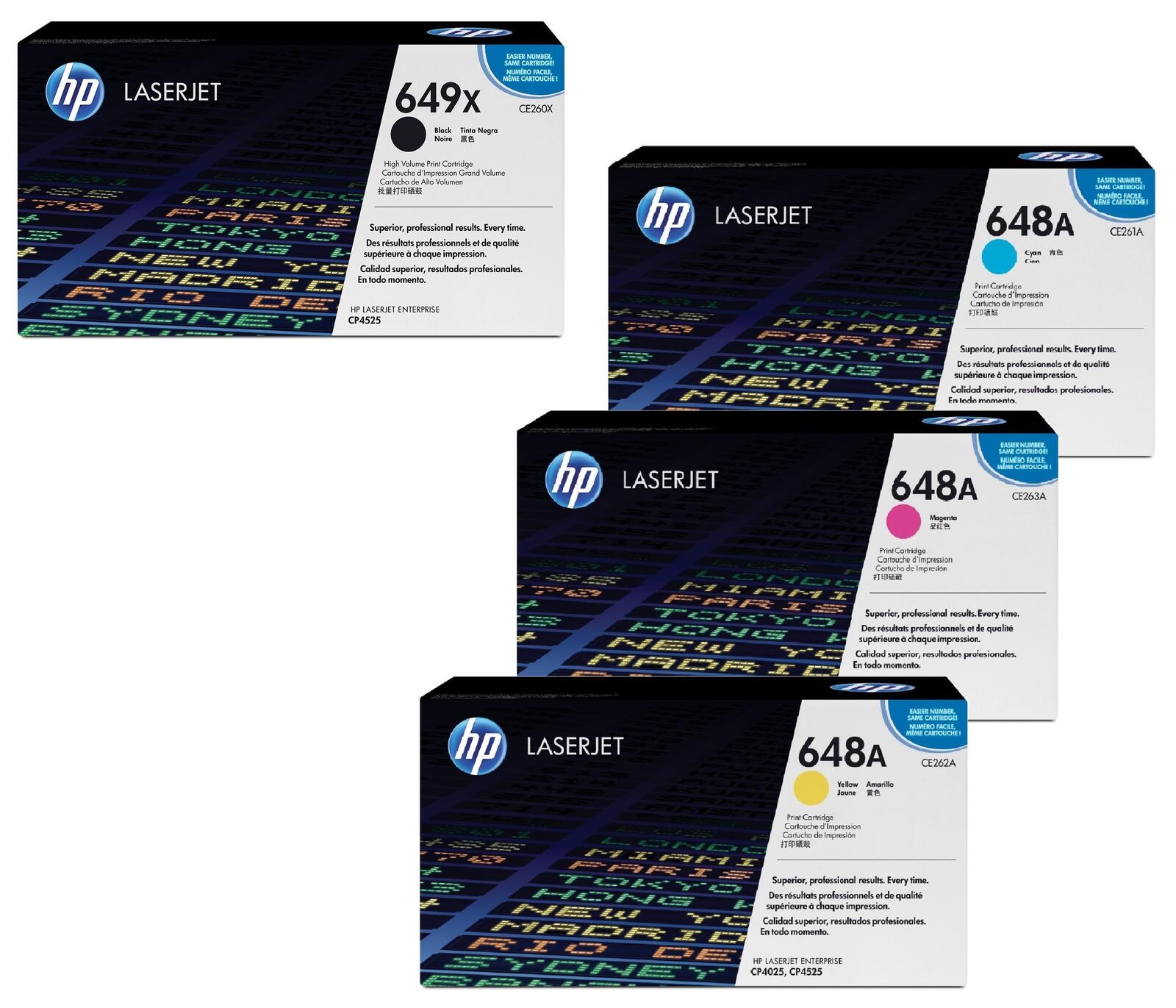 HP Original 649X/ 648A Toner 4er Set schwarz hohe Kapazität, cyan, magenta, gelb CE260X, CE261A, CE262A, CE263A