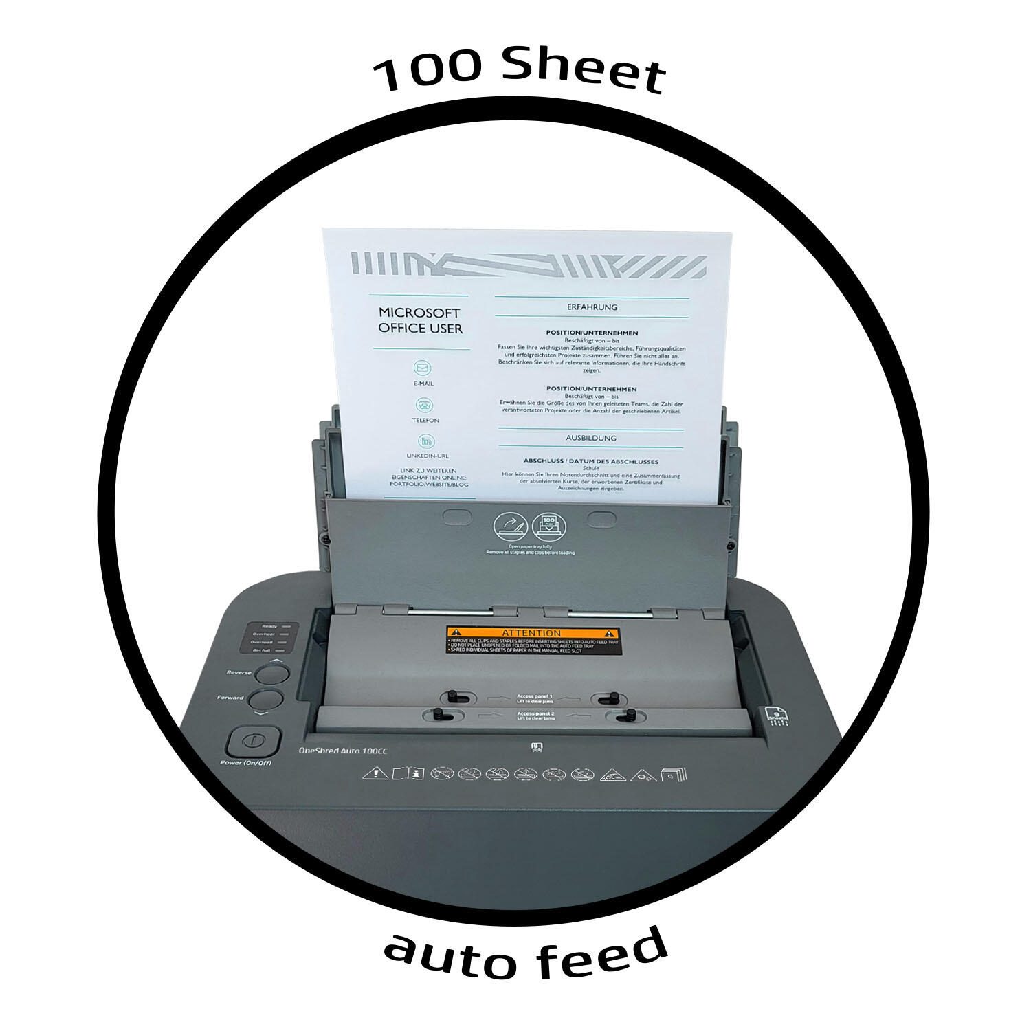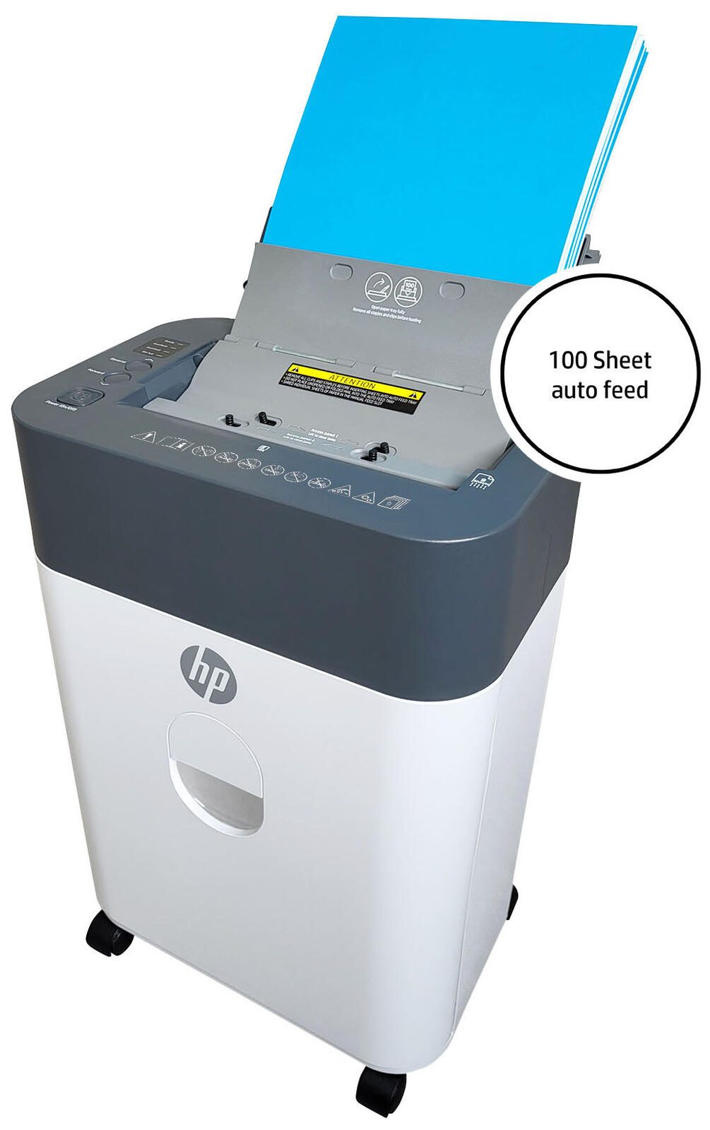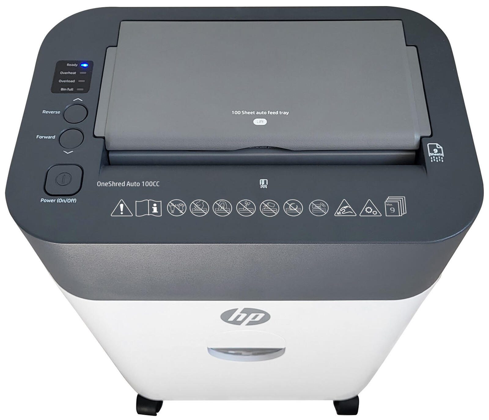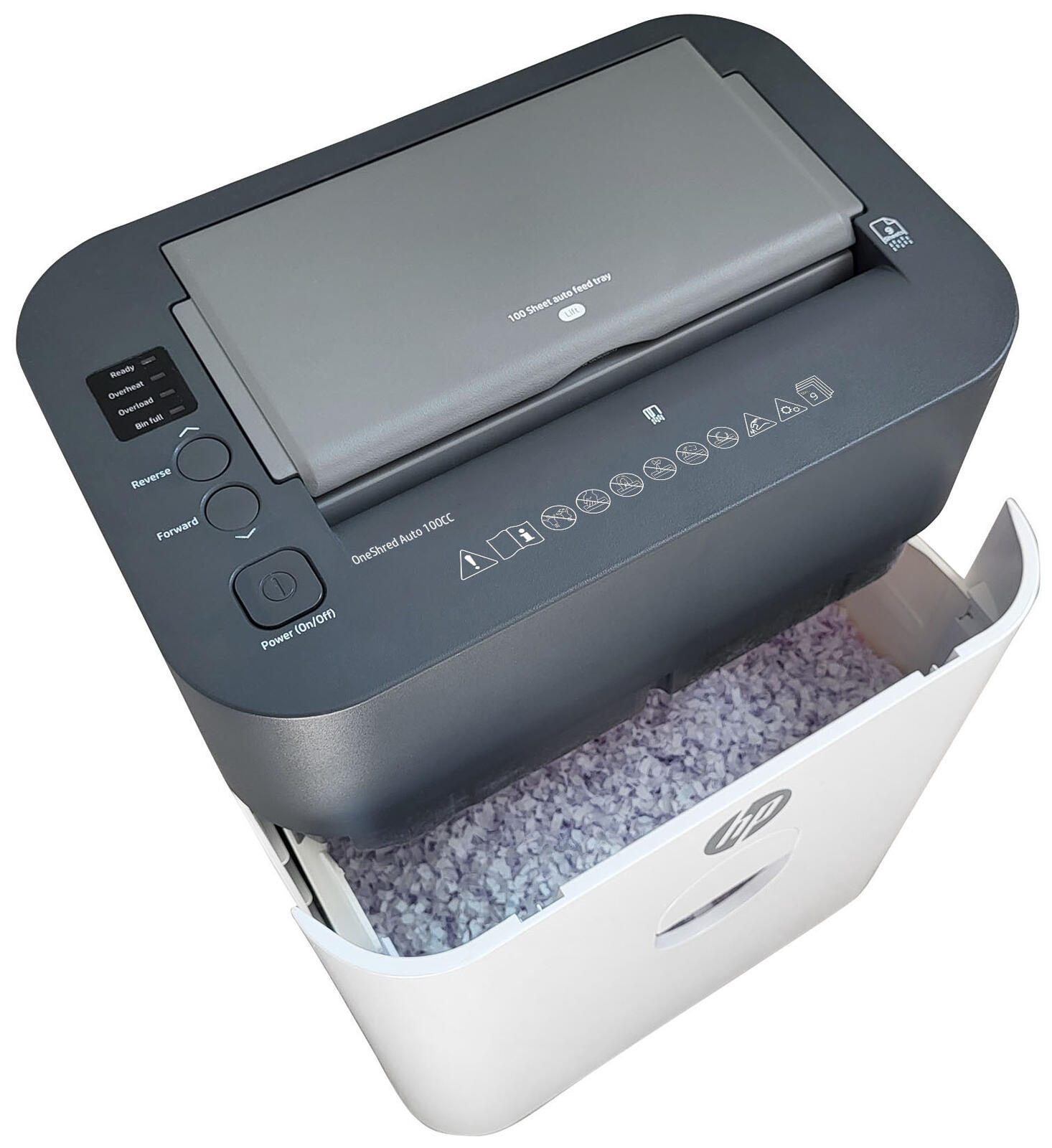HP OneShred Auto 100CC Aktenvernichter mit Partikelschnitt bis 100 Blatt weiß